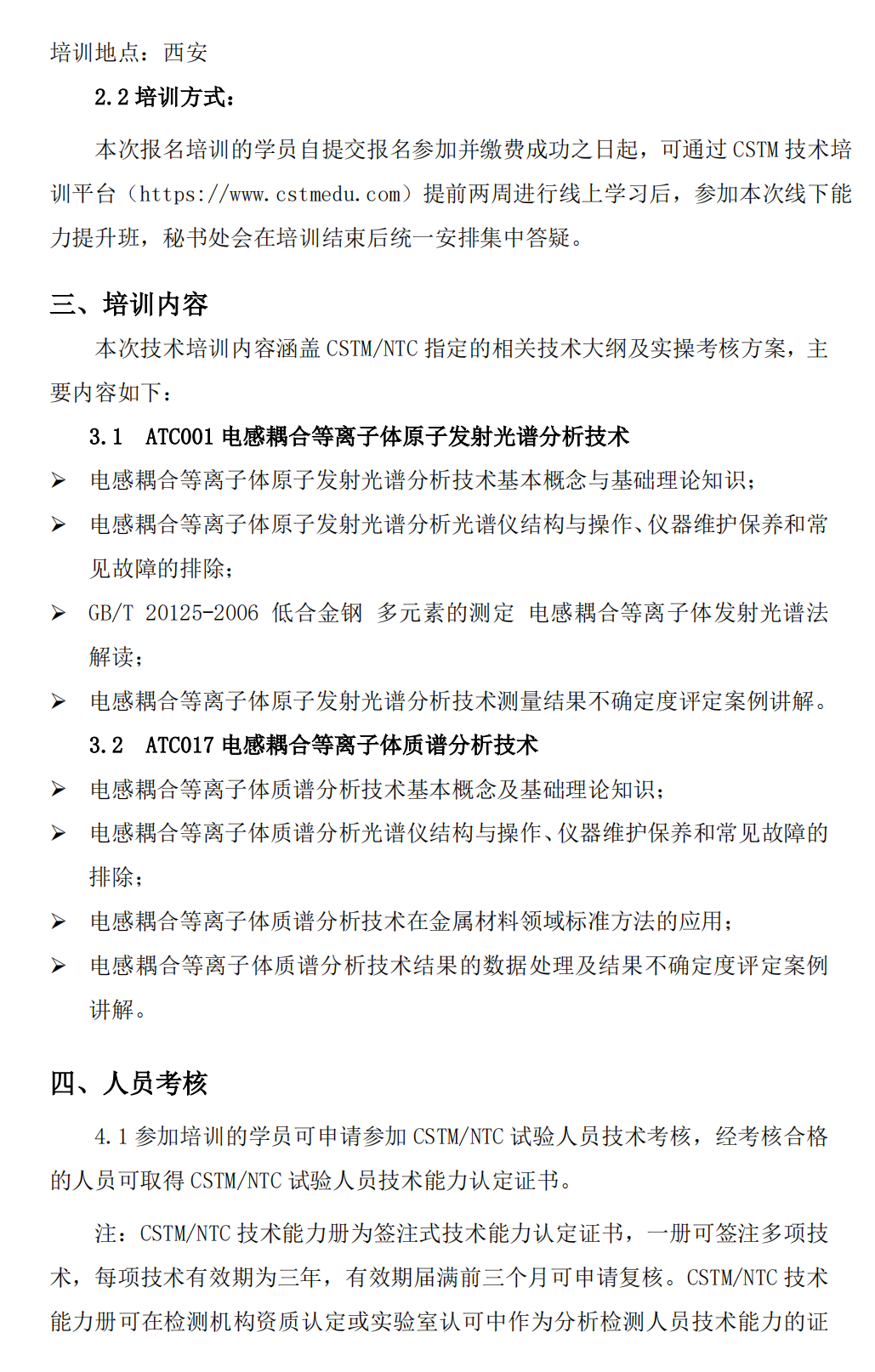 关于举办“2024年电感耦合等离子体原子发射光谱分析技术和 电感耦合等离子体质谱分析技术”培训班的通知