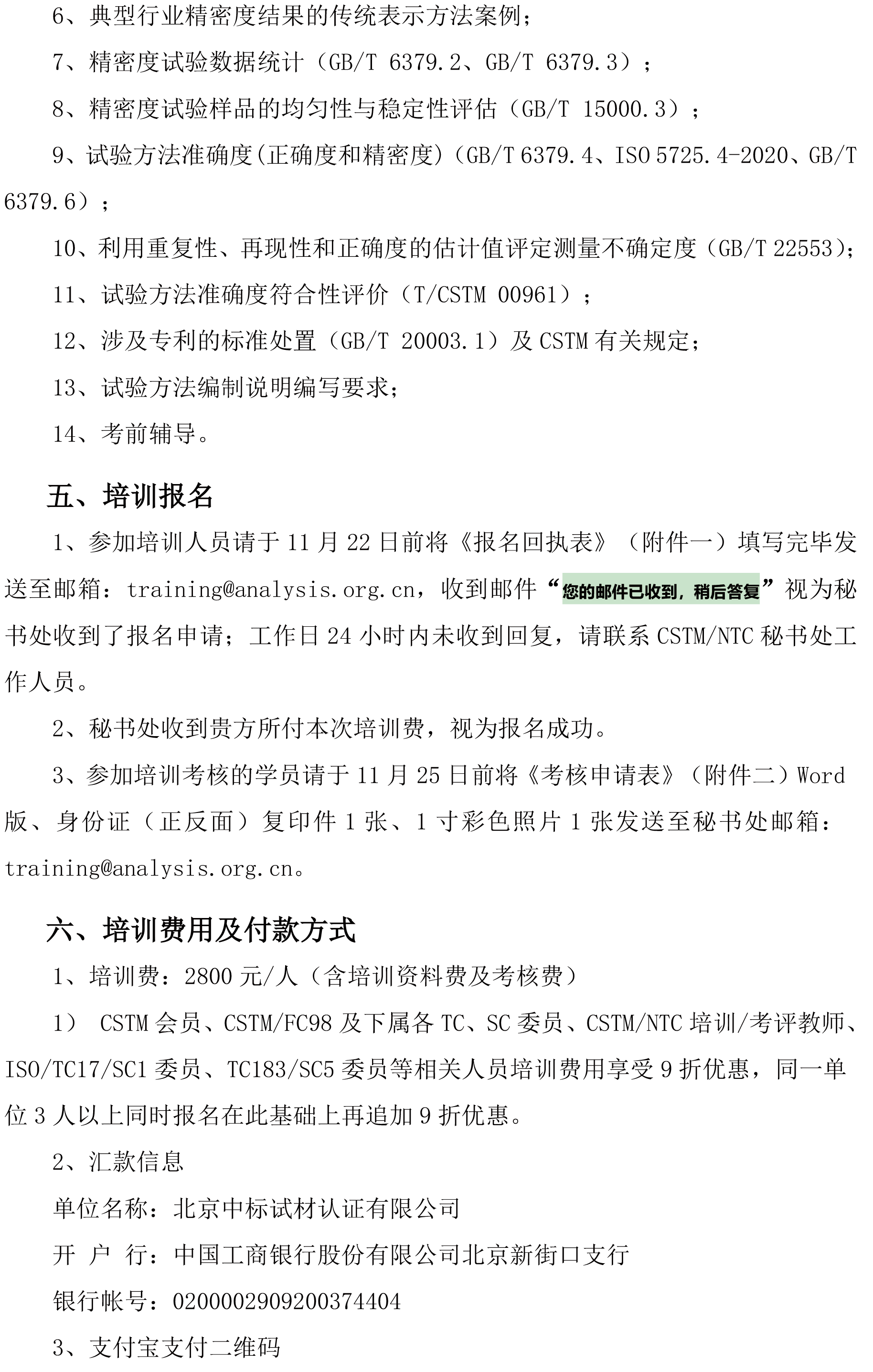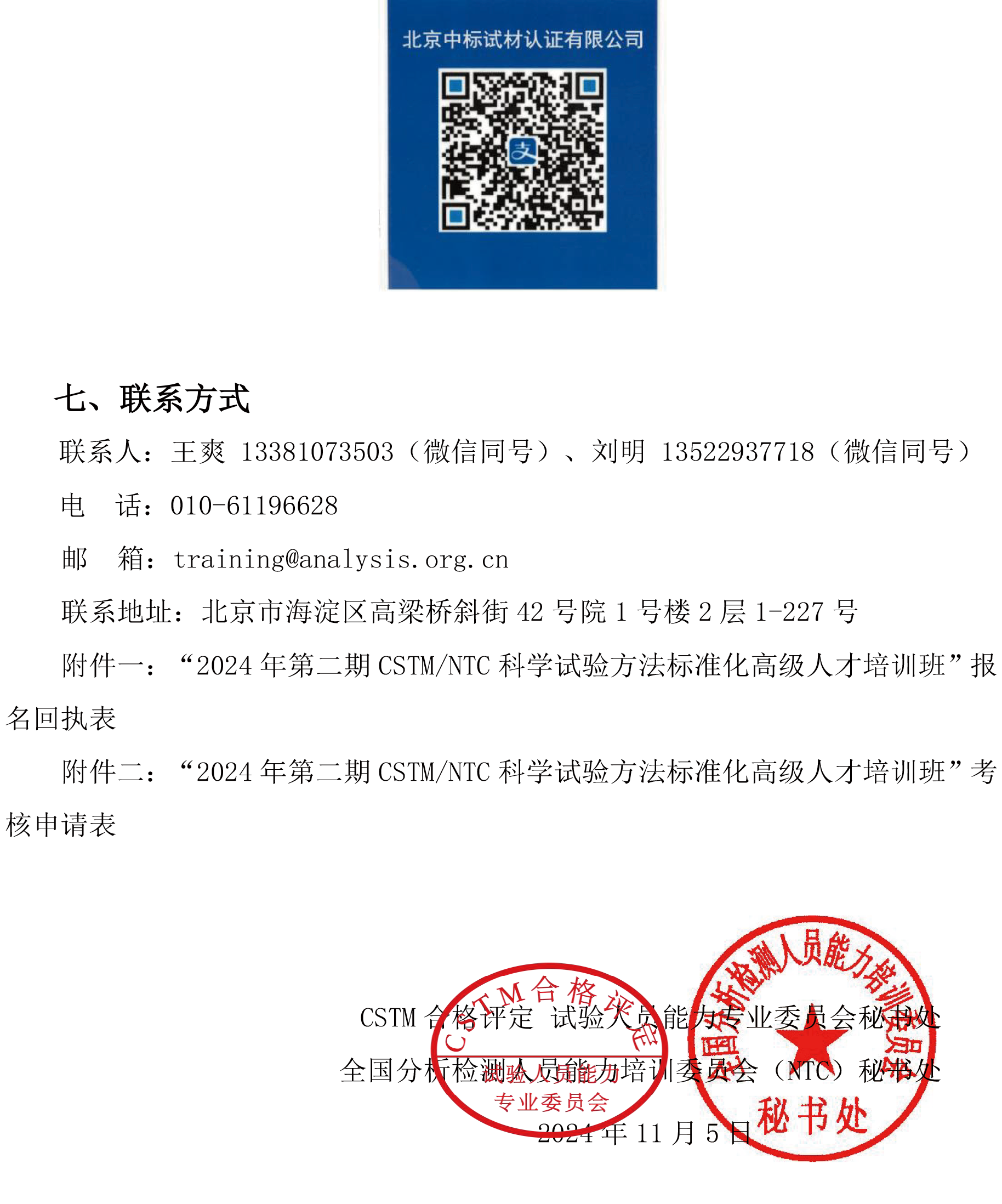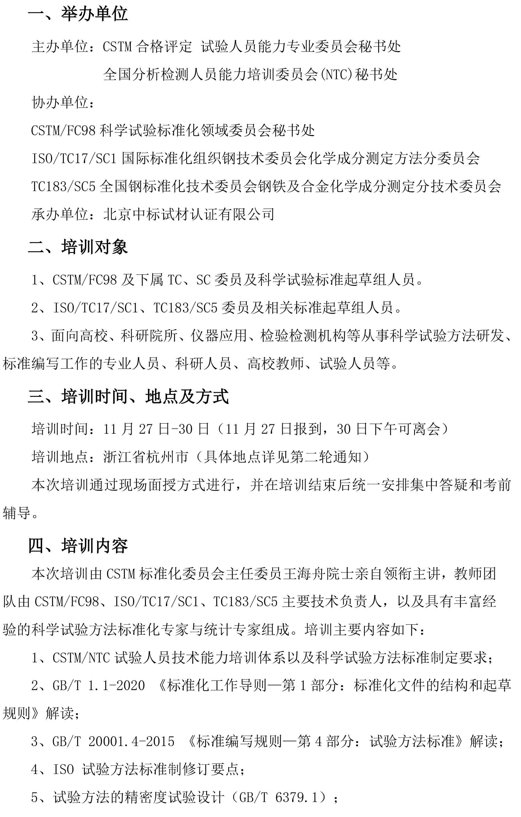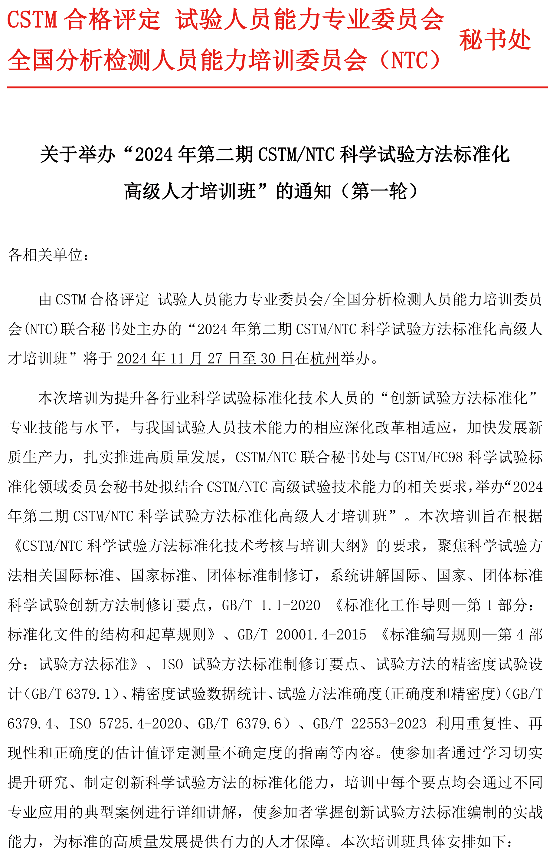 关于举办“2024年第二期CSTM/NTC科学试验方法标准化 高级人才培训班”的通知(第一轮)