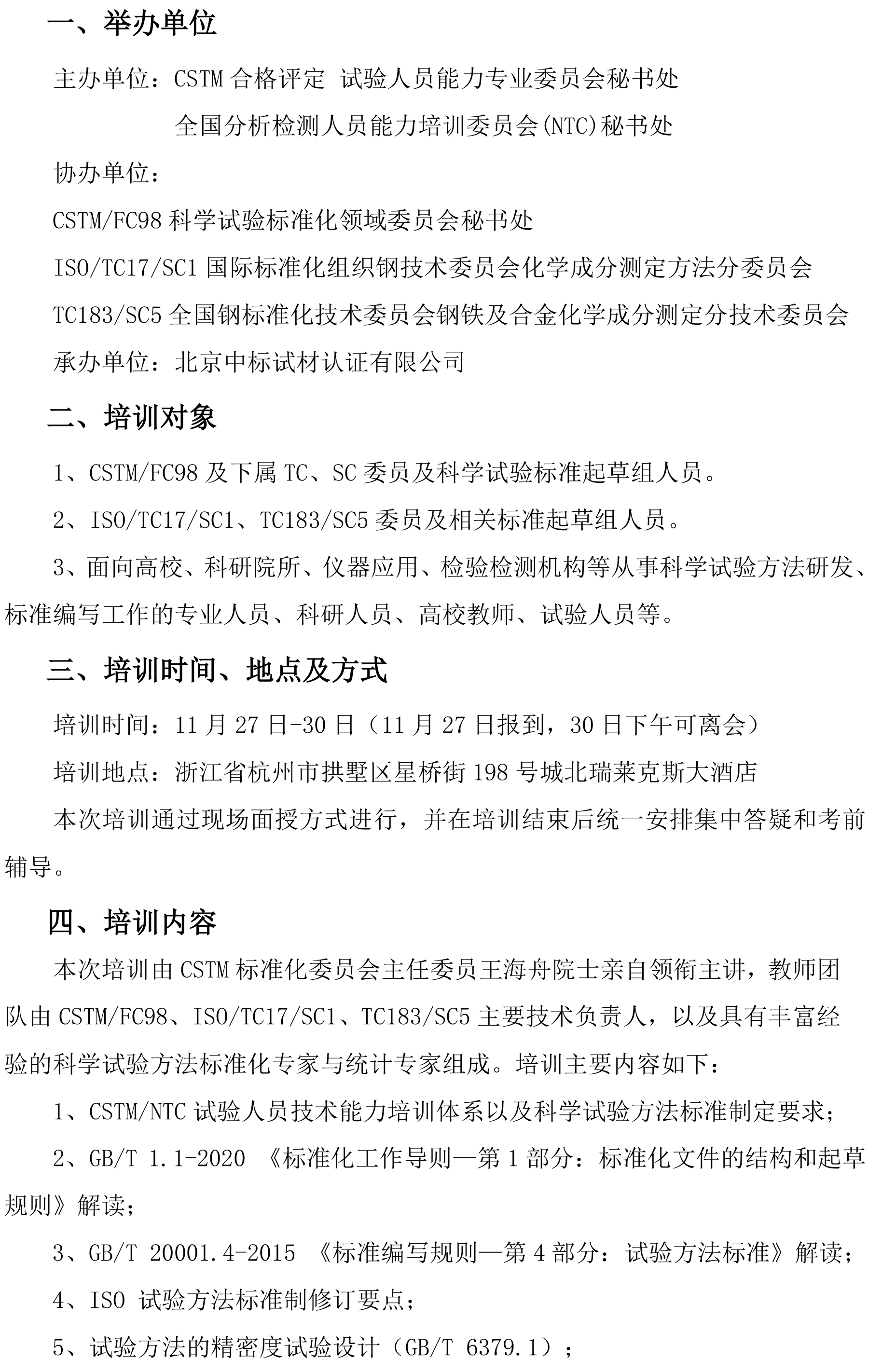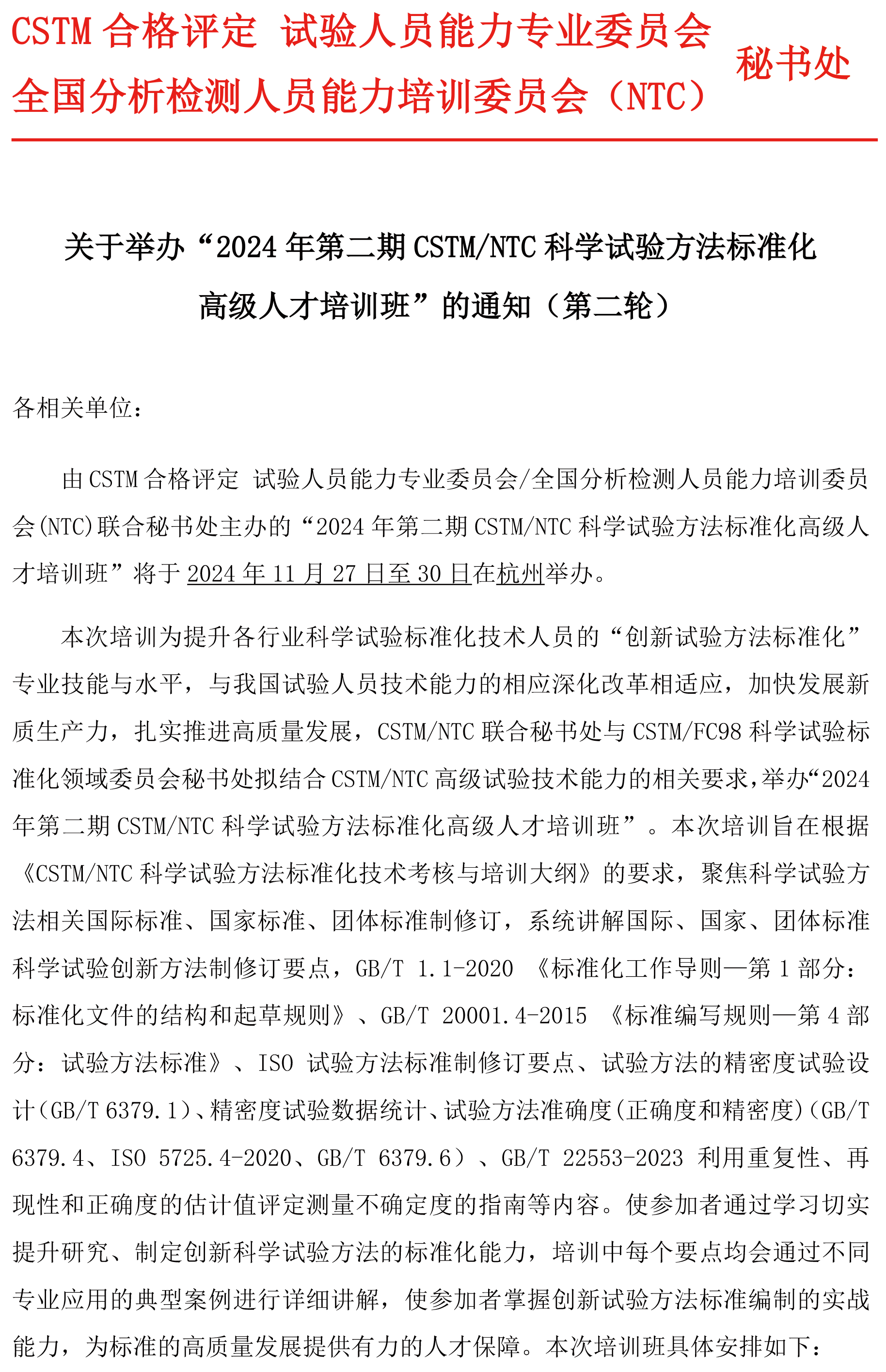 关于举办“2024年第二期CSTM/NTC科学试验方法标准化 高级人才培训班”的通知(第二轮)