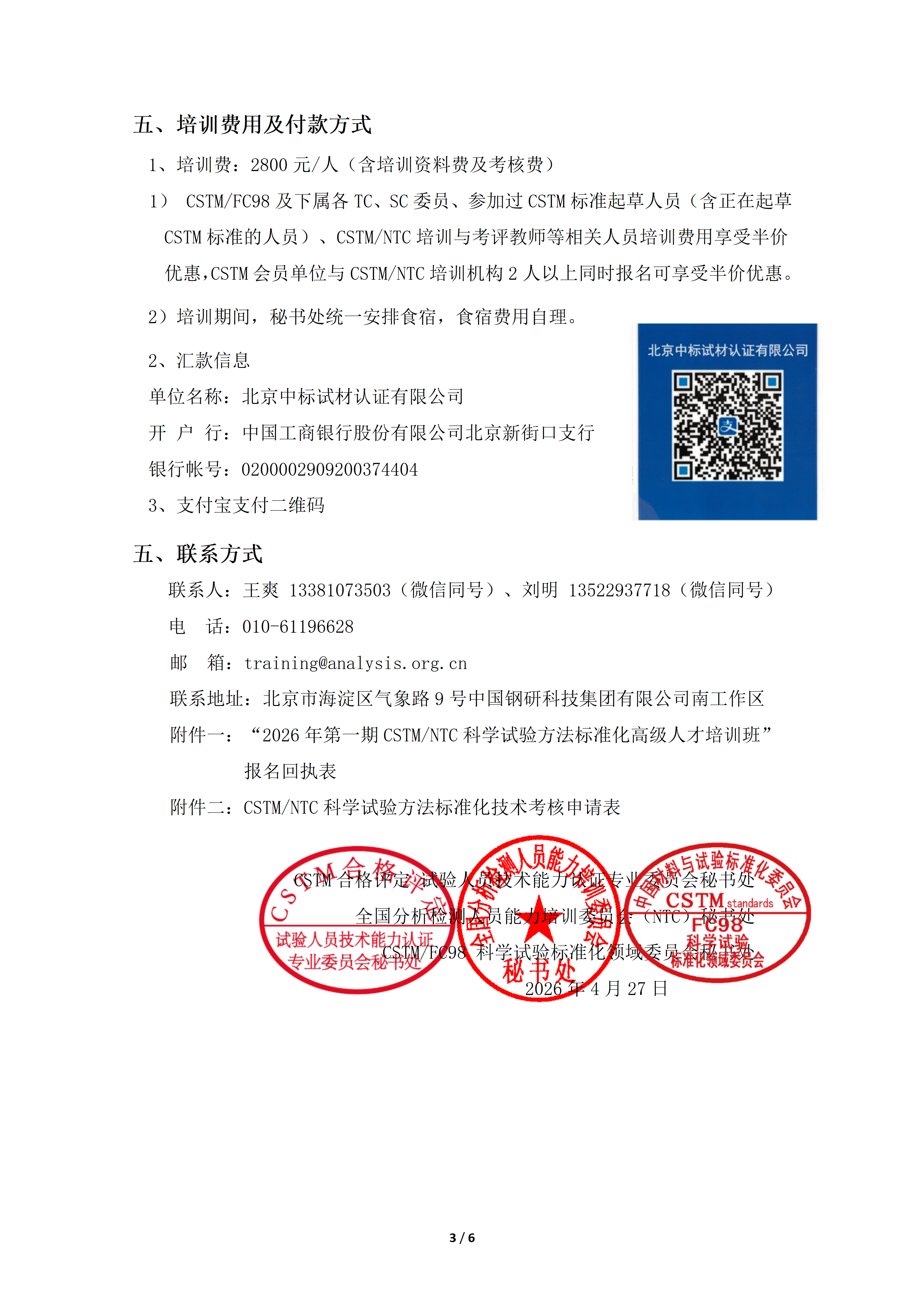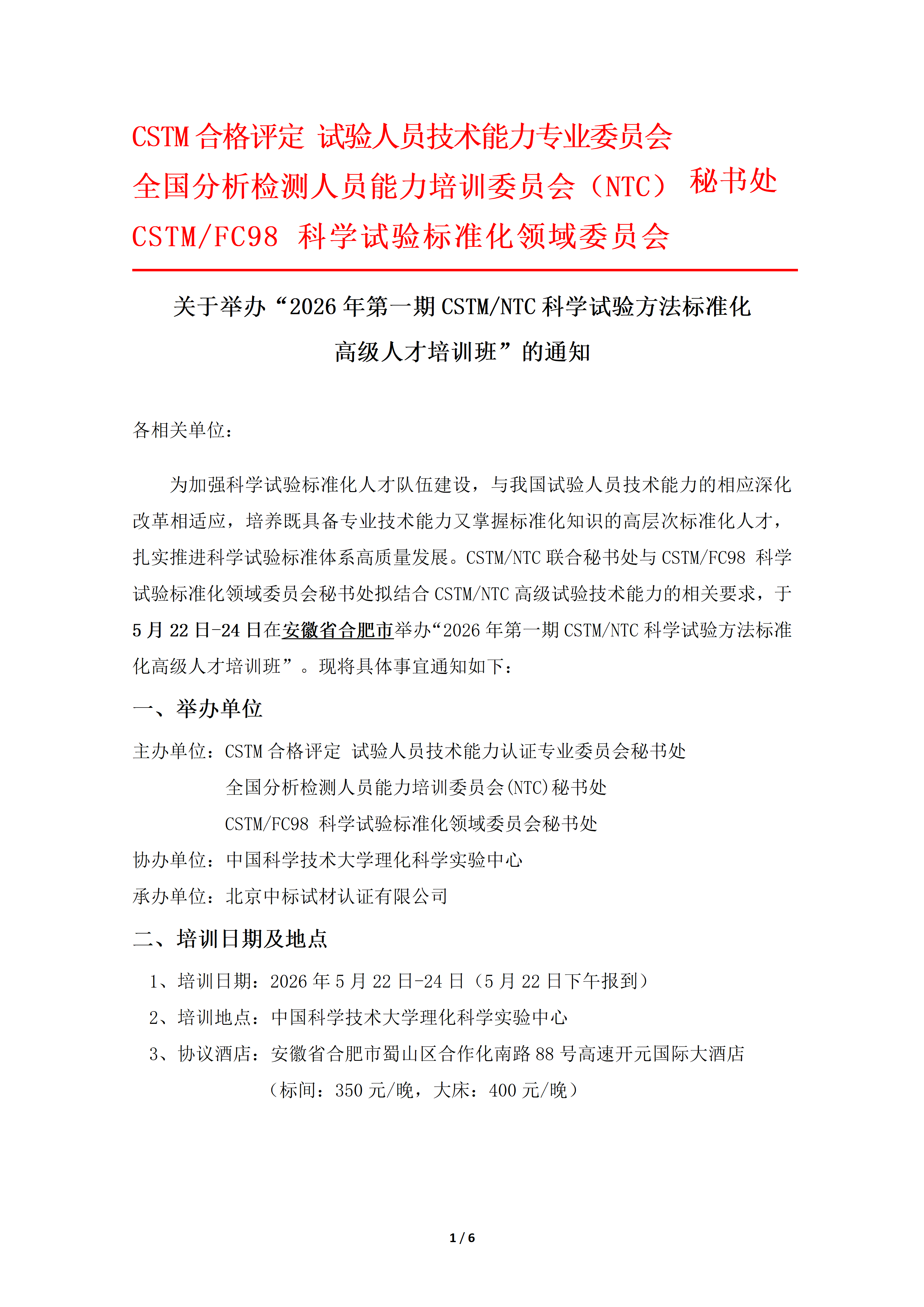 关于举办“2026年第一期CSTM/NTC科学试验方法标准化 高级人才培训班”的通知