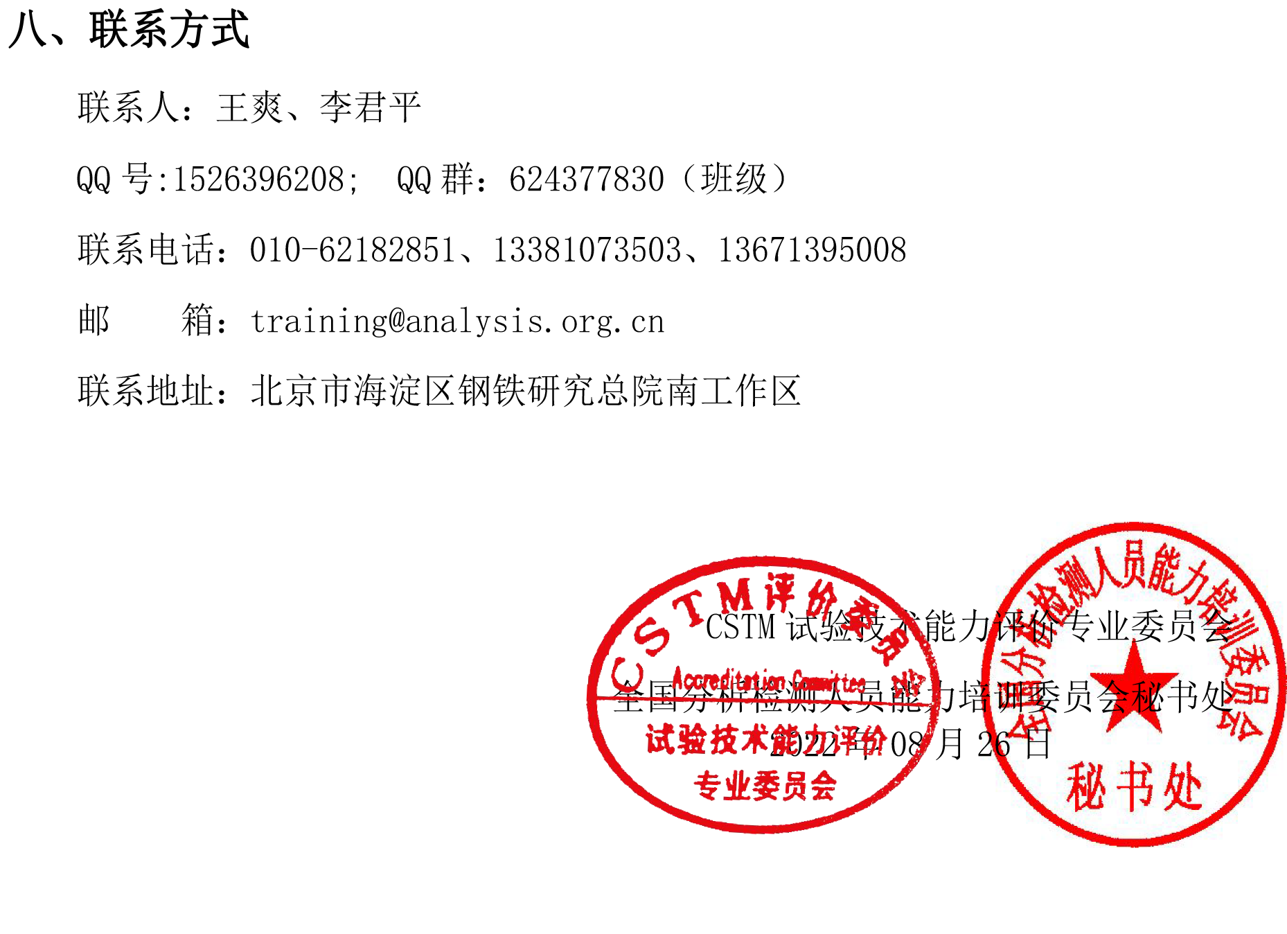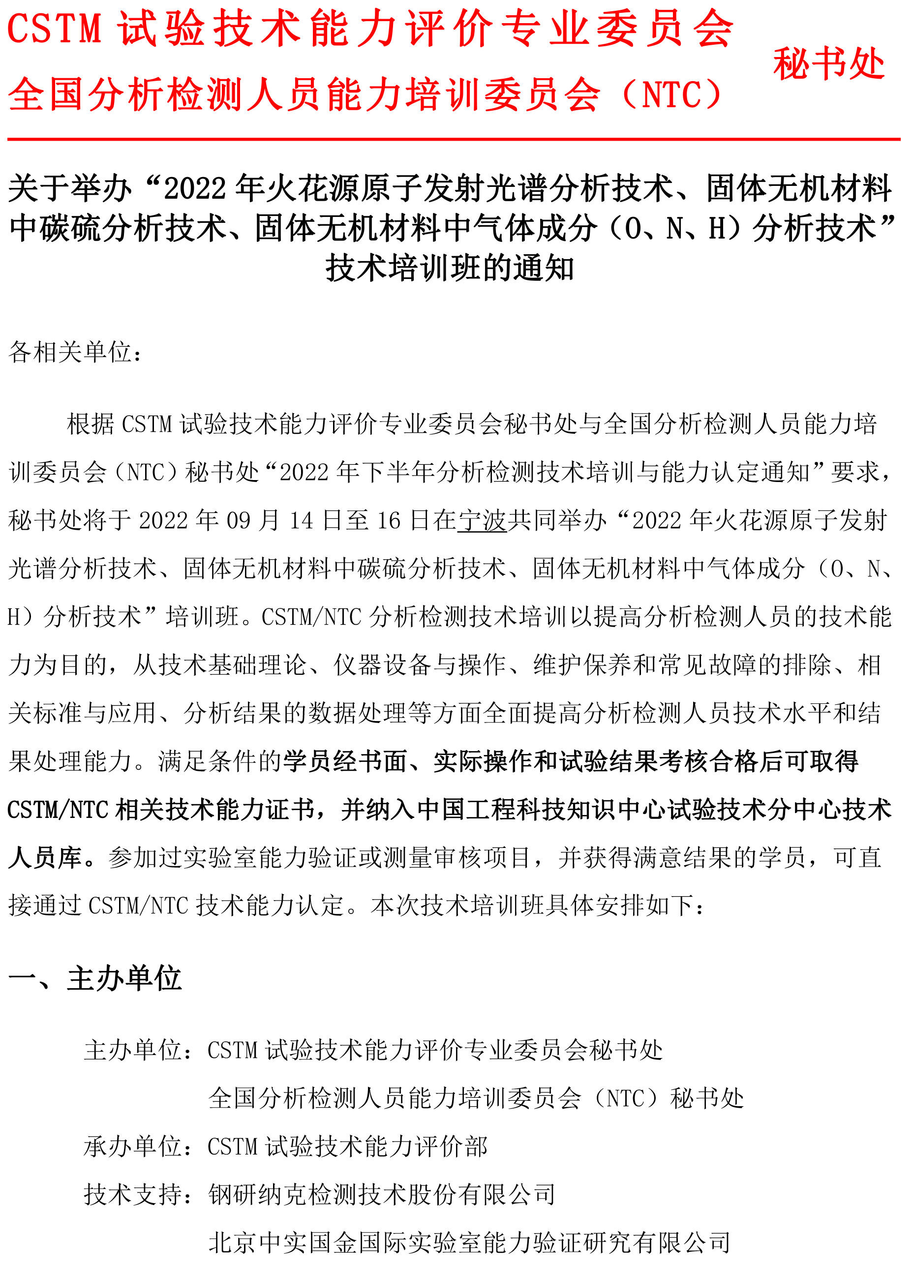 关于举办“2022 年火花源原子发射光谱分析技术、固体无机材料 中碳硫分析技术、固体无机材料中气体成分(O、N、H)分析技术” 技术培训班的通知