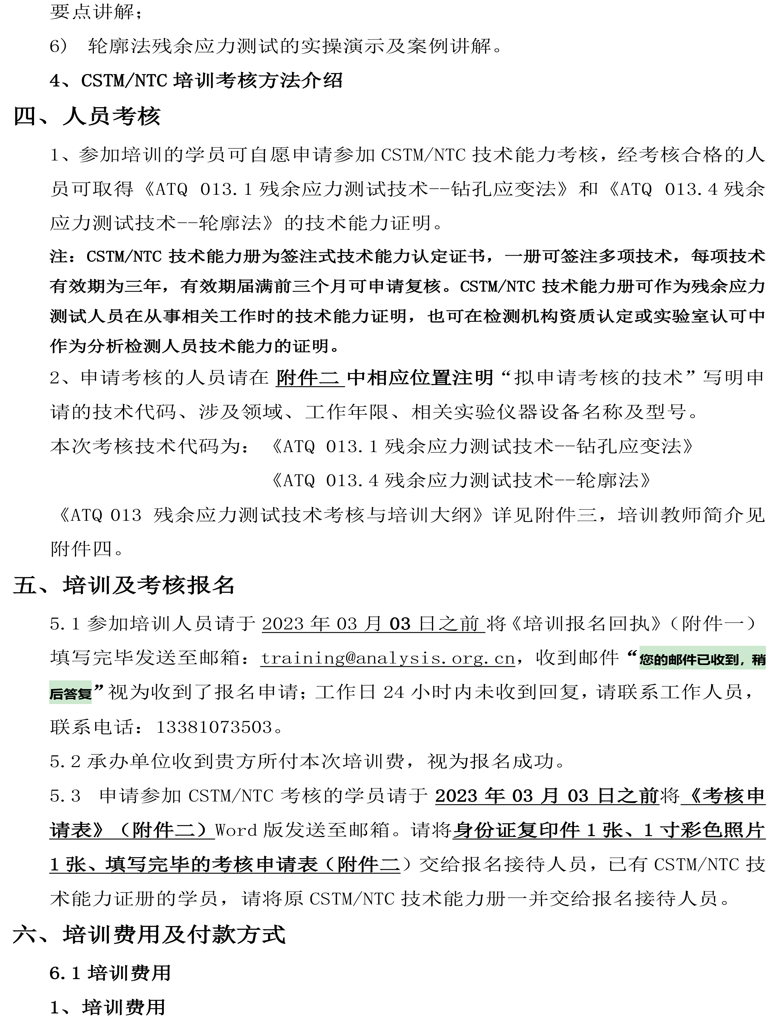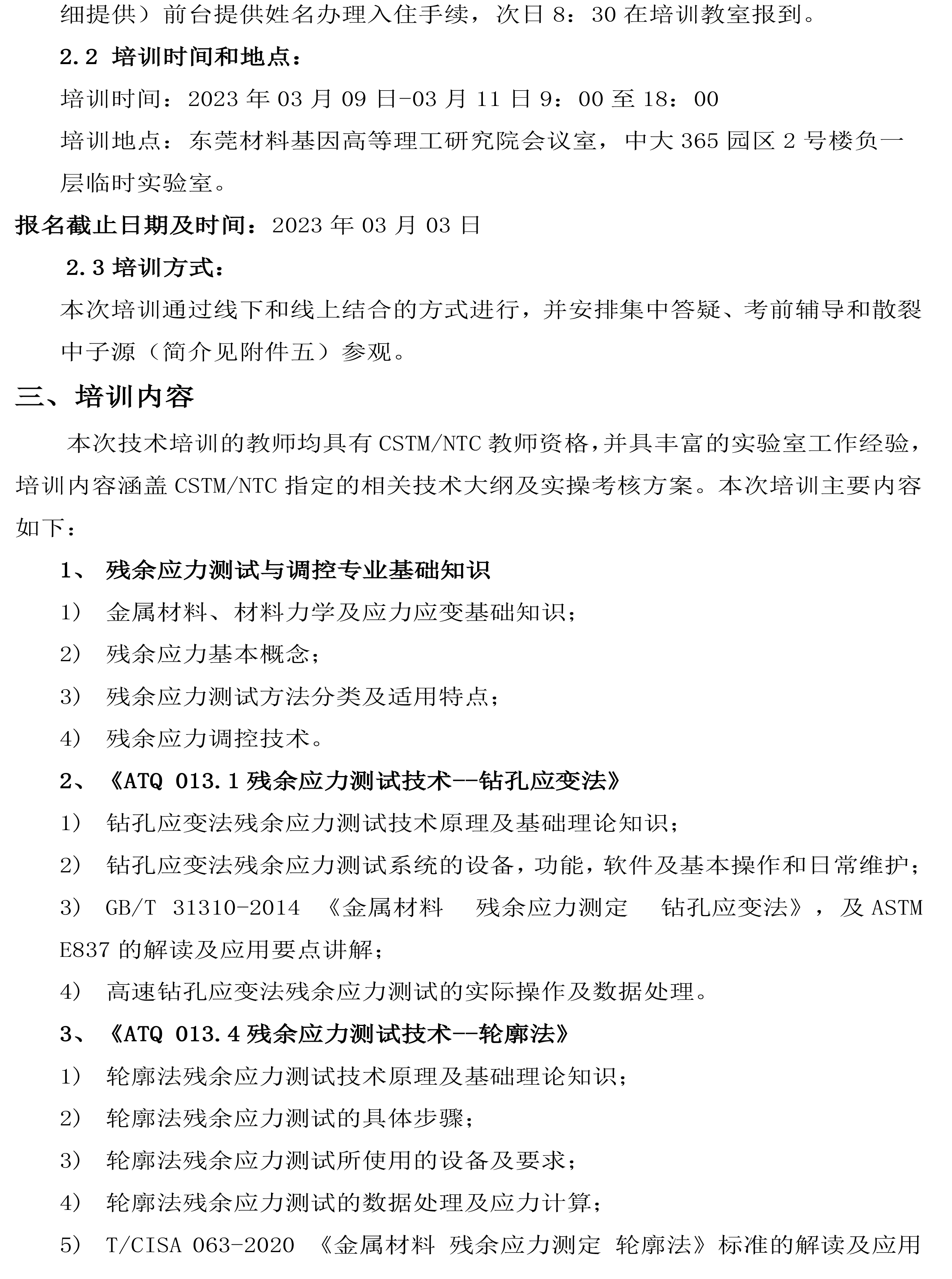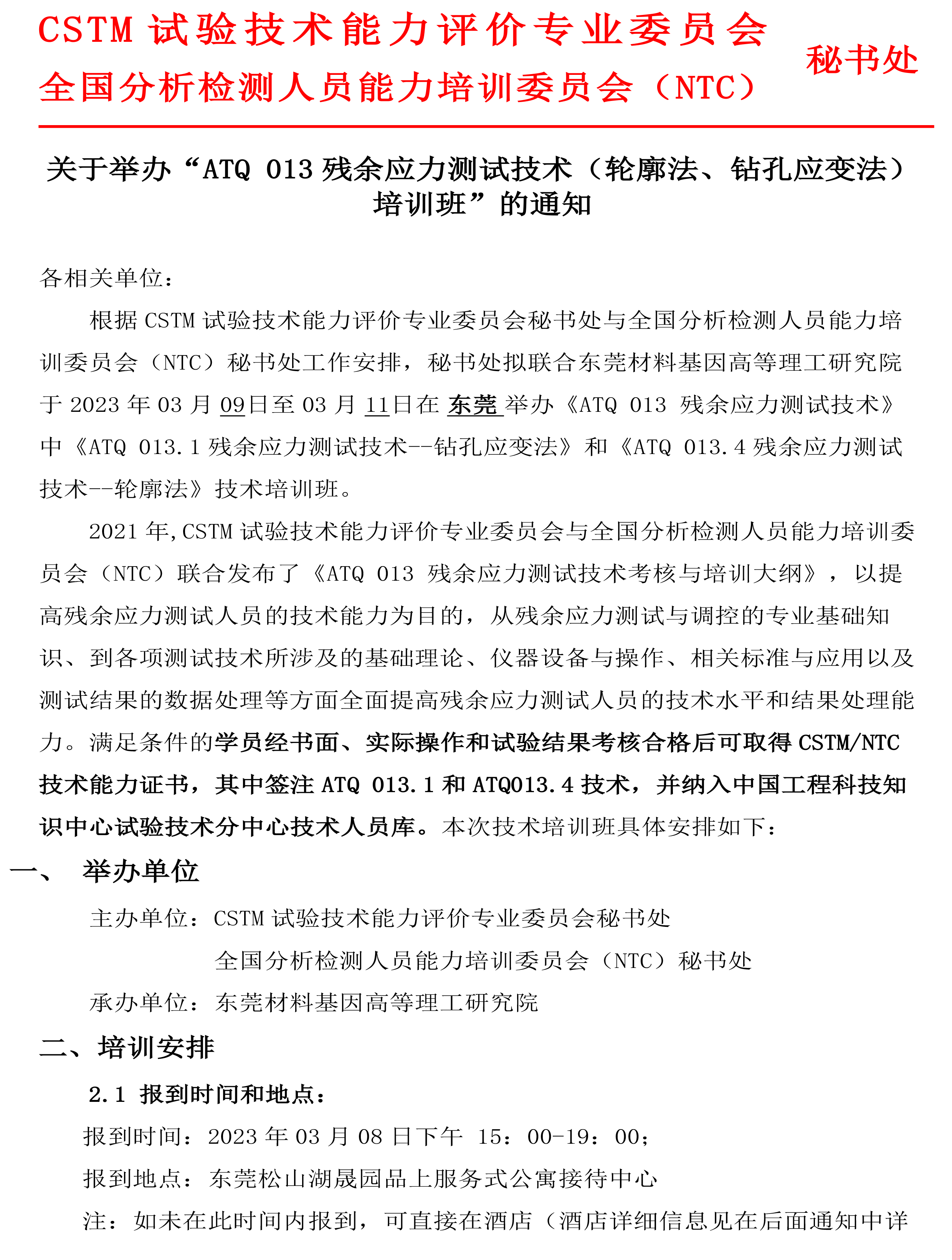 关于举办“ATQ 013残余应力测试技术(轮廓法、钻孔应变法)培训班”的通知
