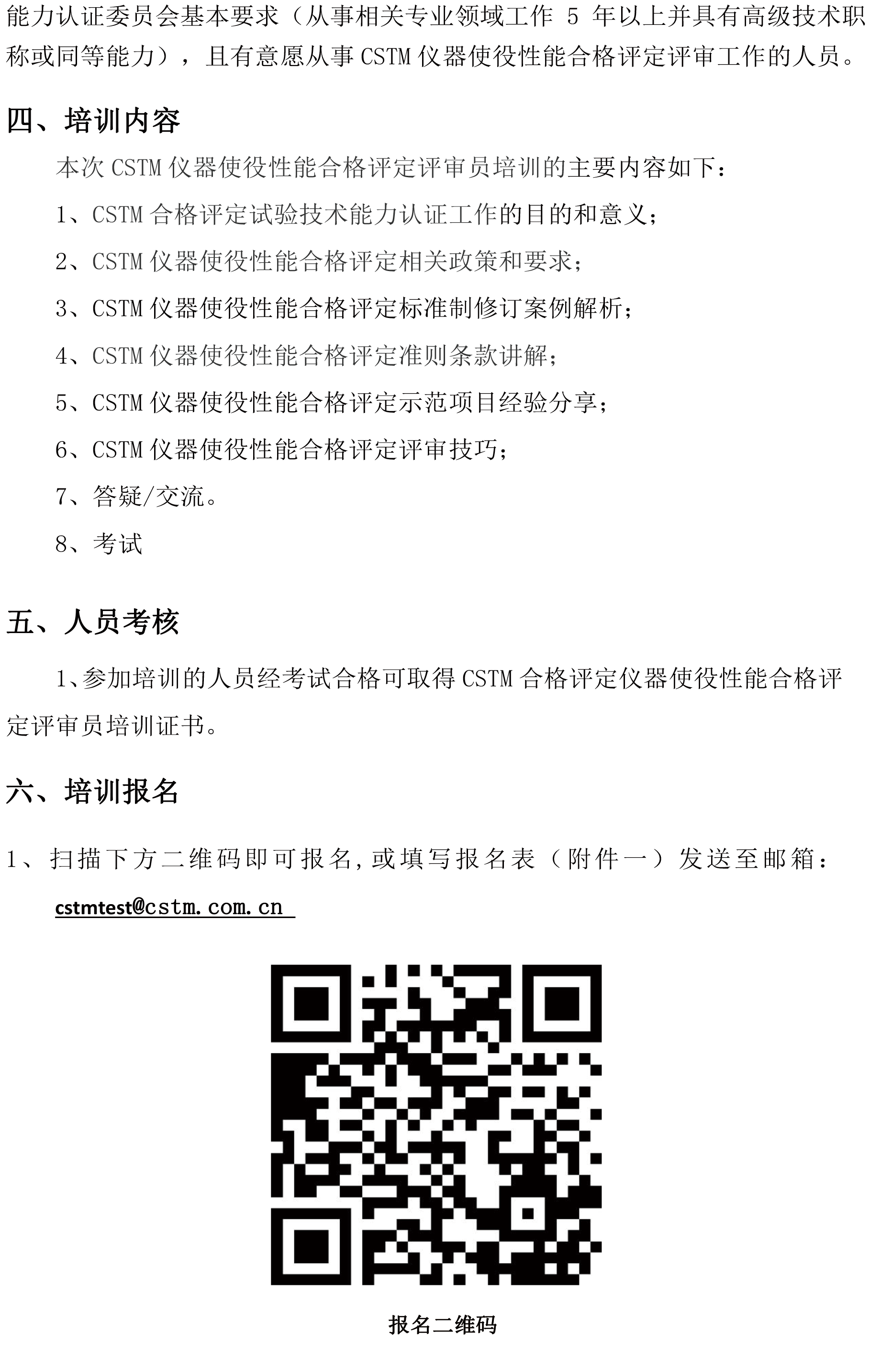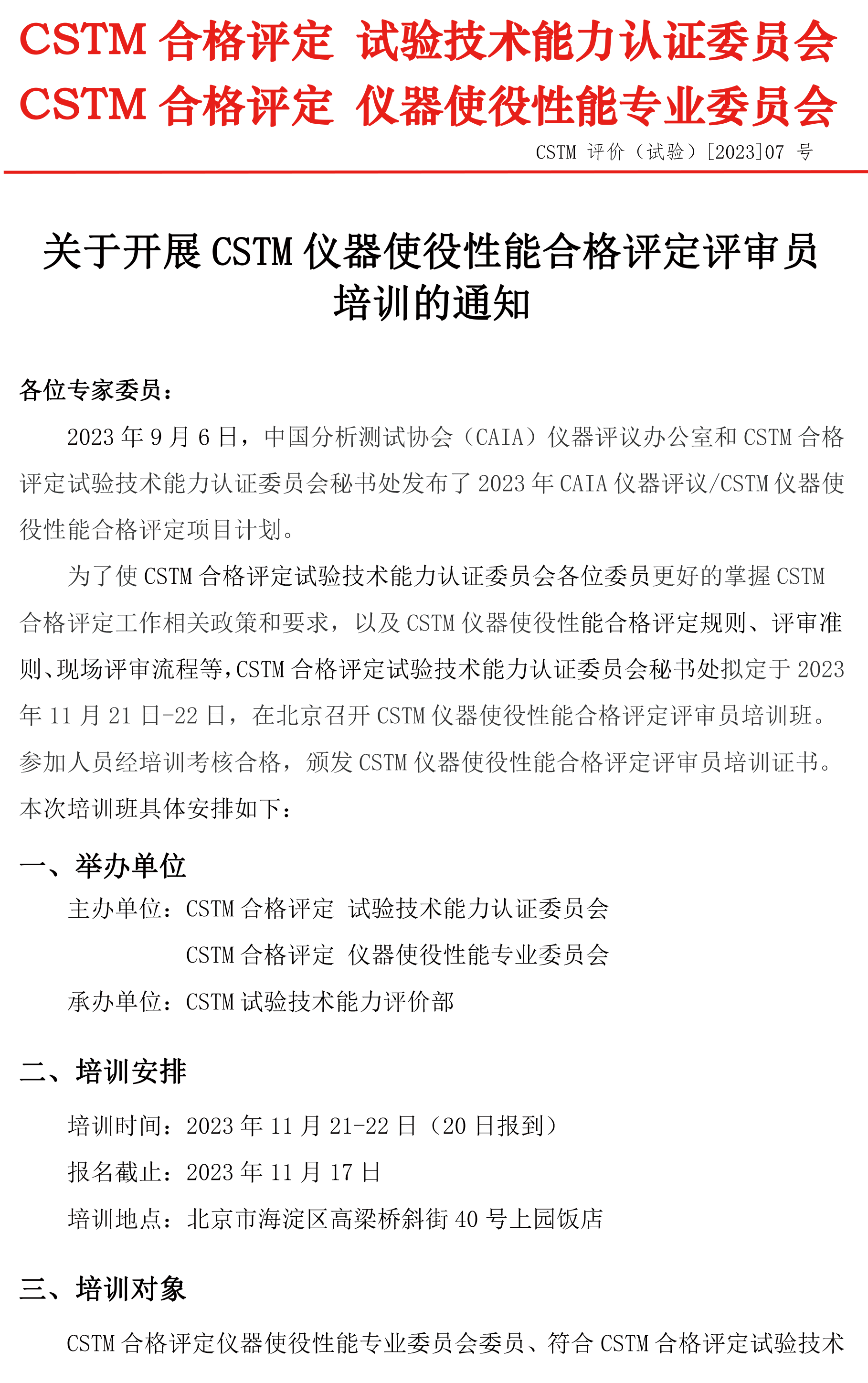 关于开展CSTM仪器使役性能合格评定评审员培训的通知