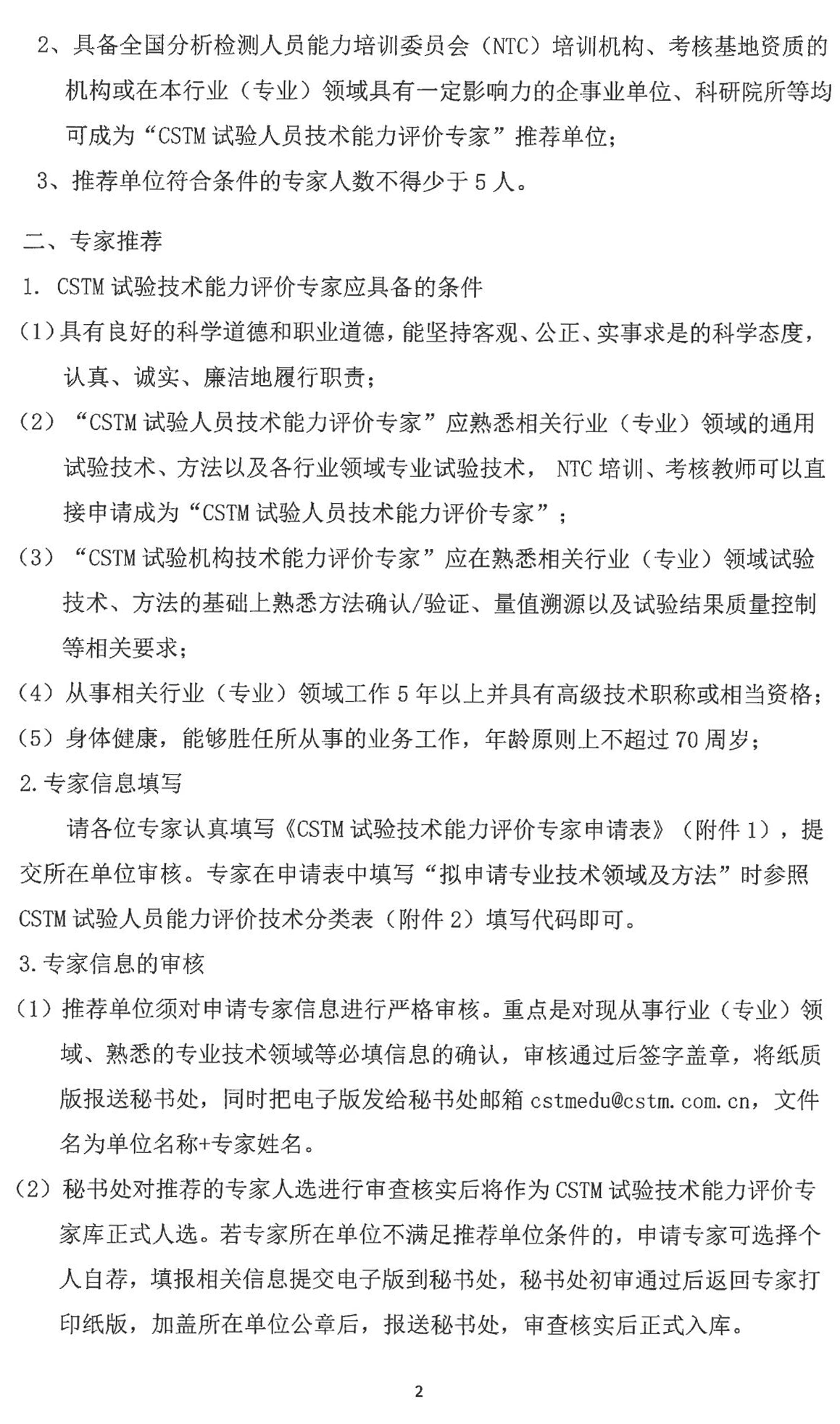 关于组织推荐CSTM试验技术能力评价专家的通知