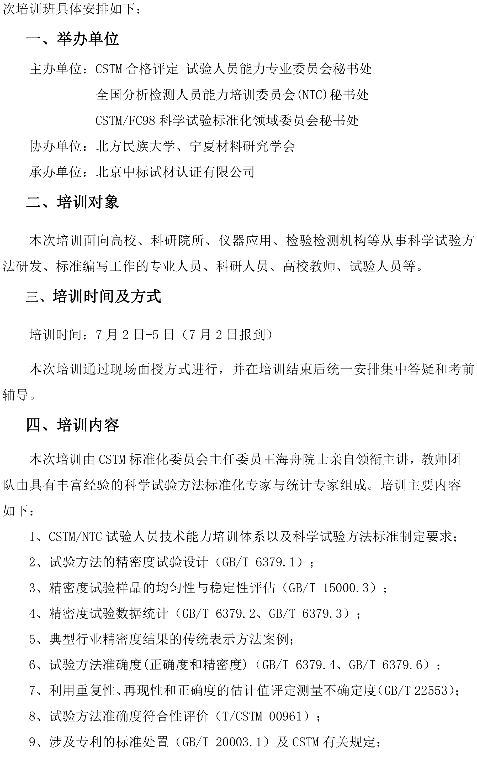 关于举办“2024年第一期CSTM/NTC科学试验方法标准化 高级人才培训班”的通知
