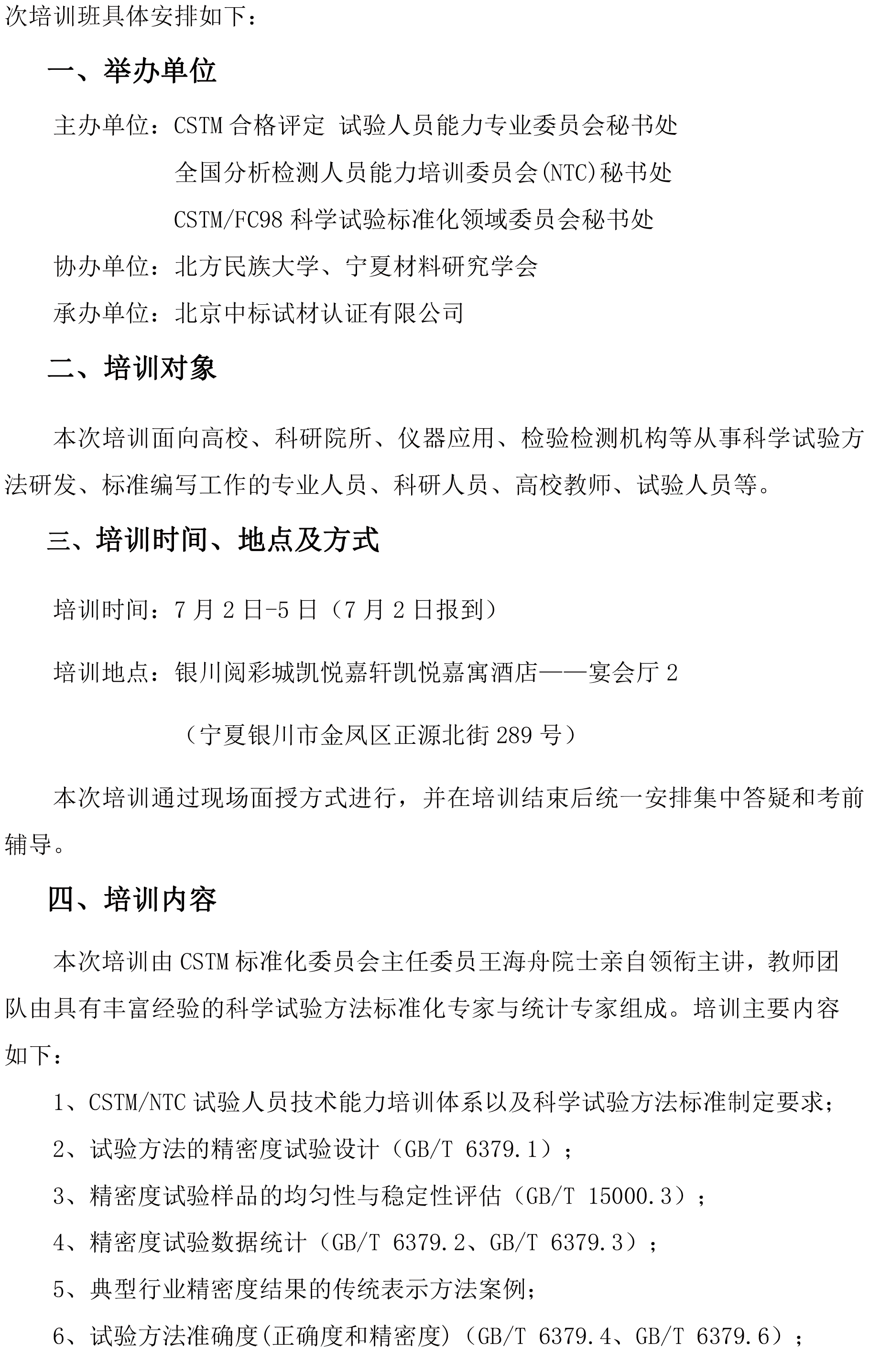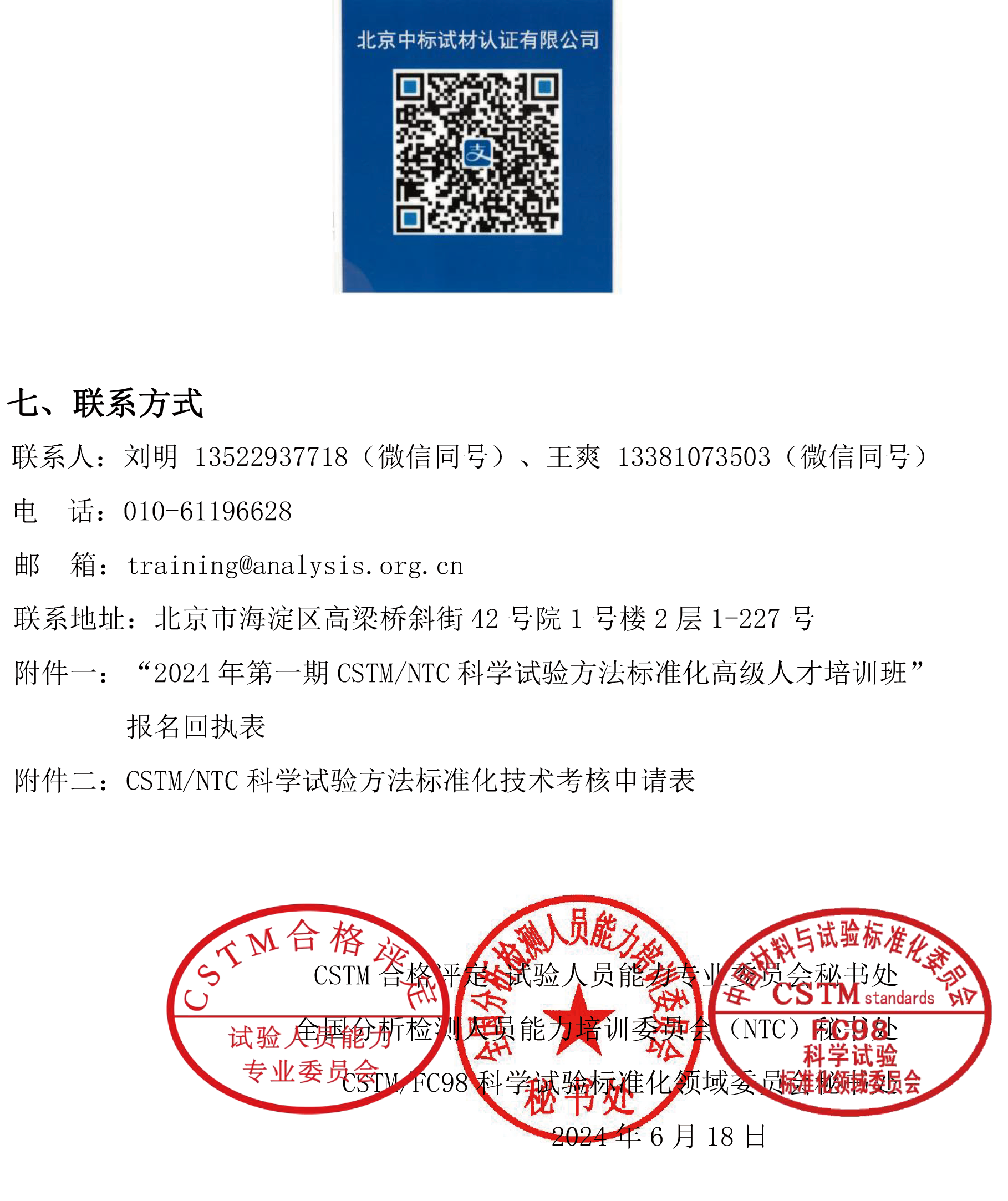 关于举办“2024年第一期CSTM/NTC科学试验方法标准化 高级人才培训班”的通知(第二轮)