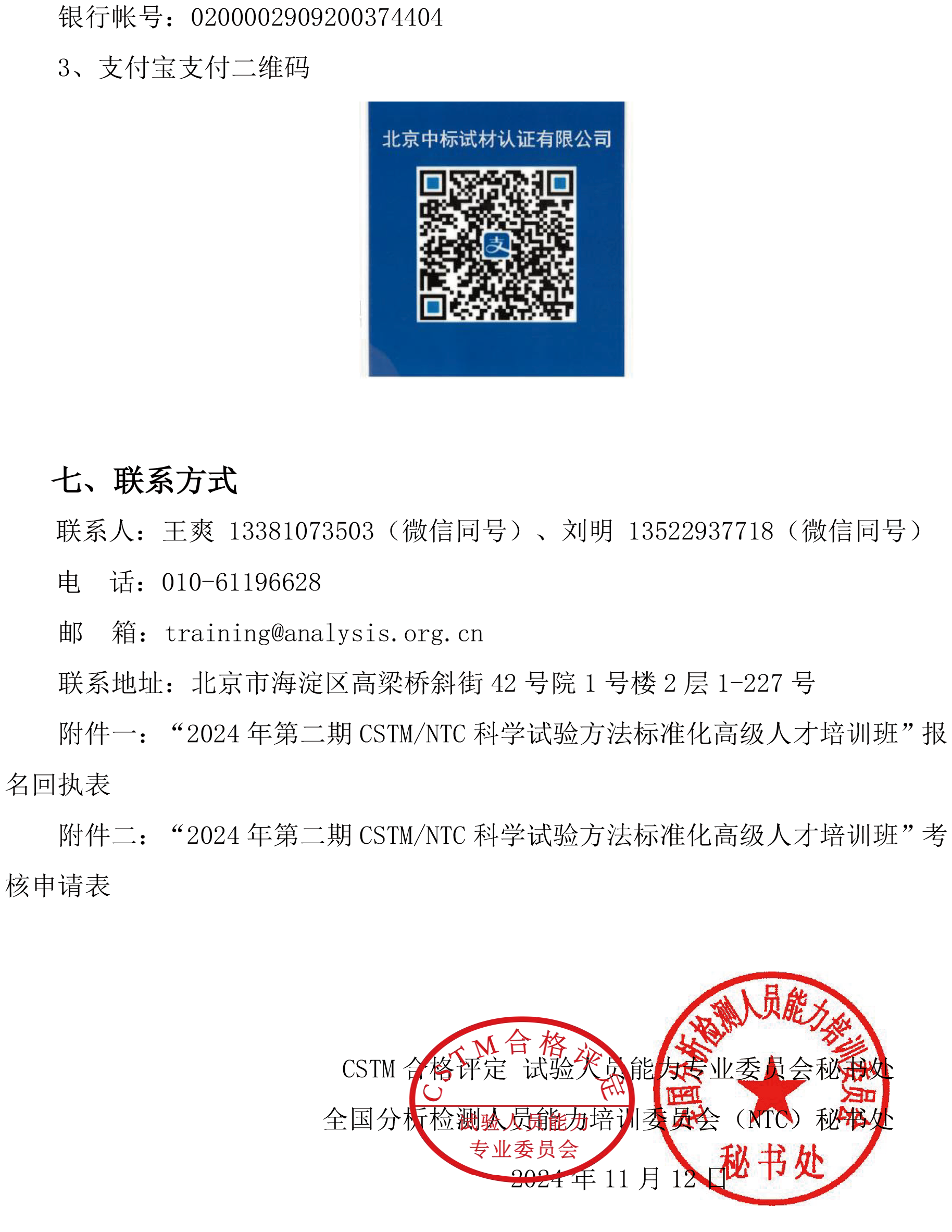 关于举办“2024年第二期CSTM/NTC科学试验方法标准化 高级人才培训班”的通知(第二轮)
