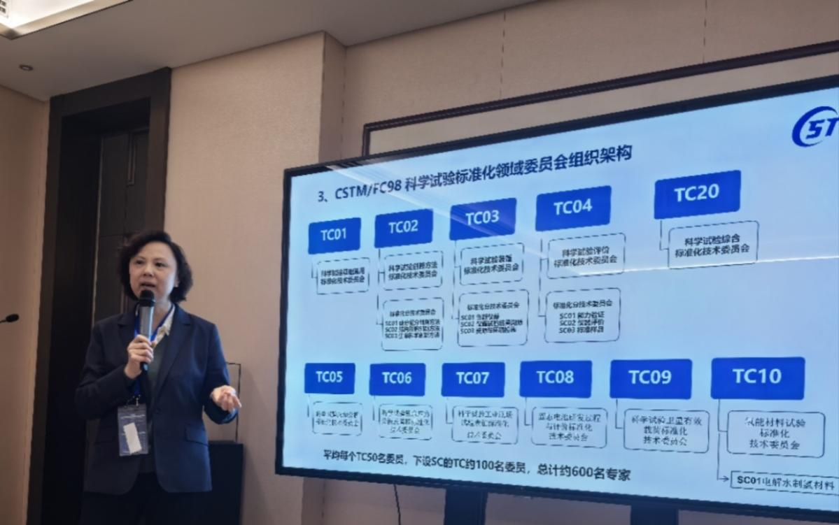 国家计量认证中国科学院评审组负责人/CSTM-FC98科学试验领域标委会副秘书长申孟芝处长作了题为《标准化人才助推科技创新》的报告,指出标准化人才建设是推动科技创新的重要部分,涉及科研、管理、应用、教育和国际标准化等多个领域。报告通过实际案例,展示了标准化人才在科研和产业中的重要性,并提出了CSTM/NTC科学试验方法标准化高级人才培养的目标是培养具备研究、制定创新试验技术方案及标准化能力的高级实验人才,以满足社会对高质量标准化人才的需求。
