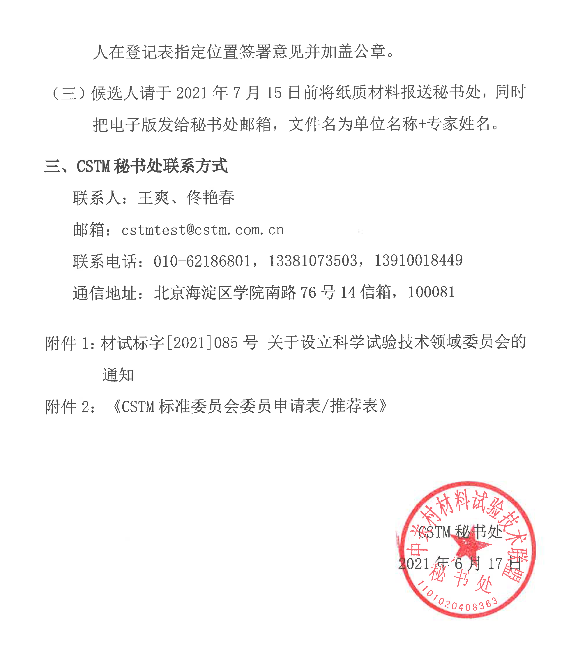 关于组织推荐《CSTM标准委员会 科学试验技术领域委员会》委员的通知