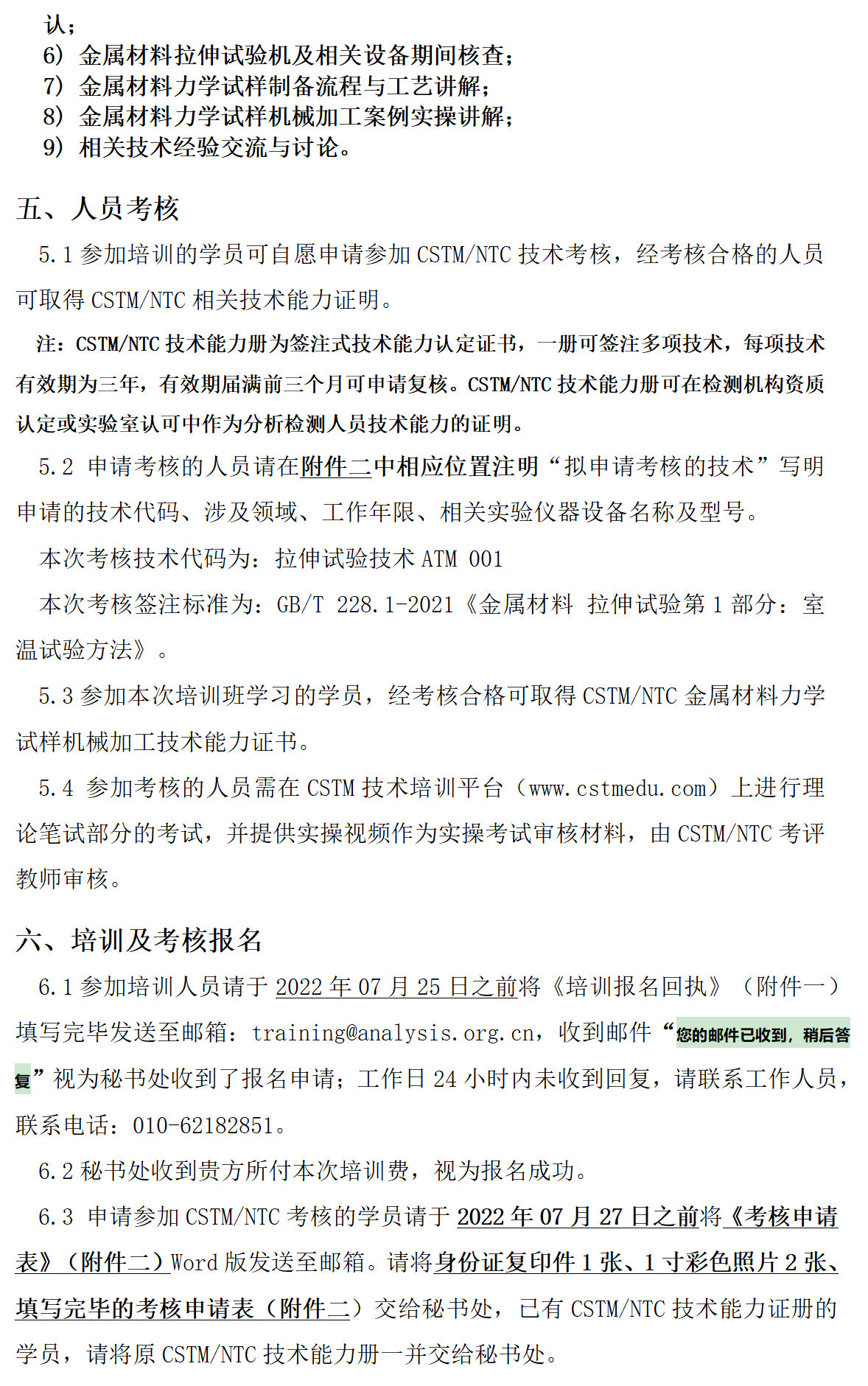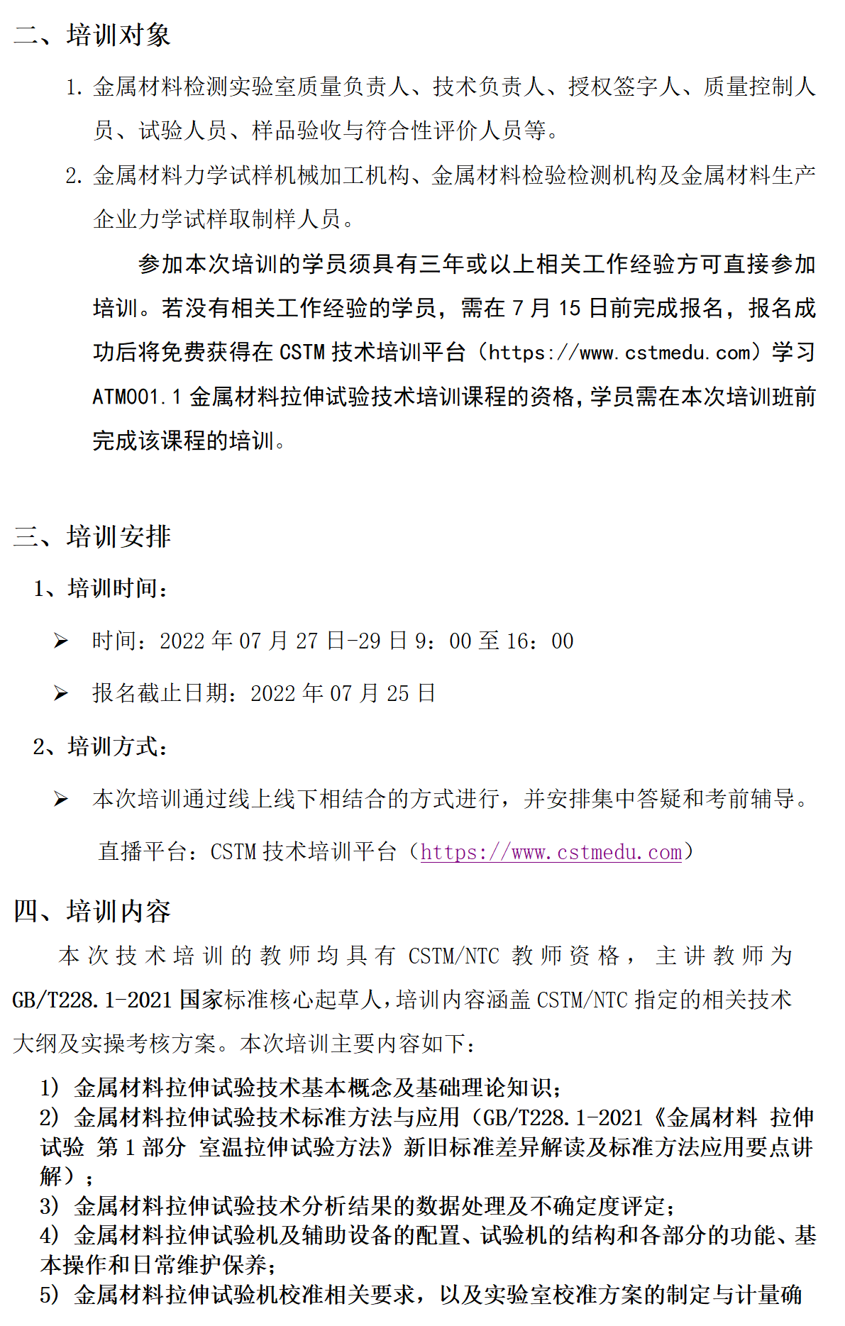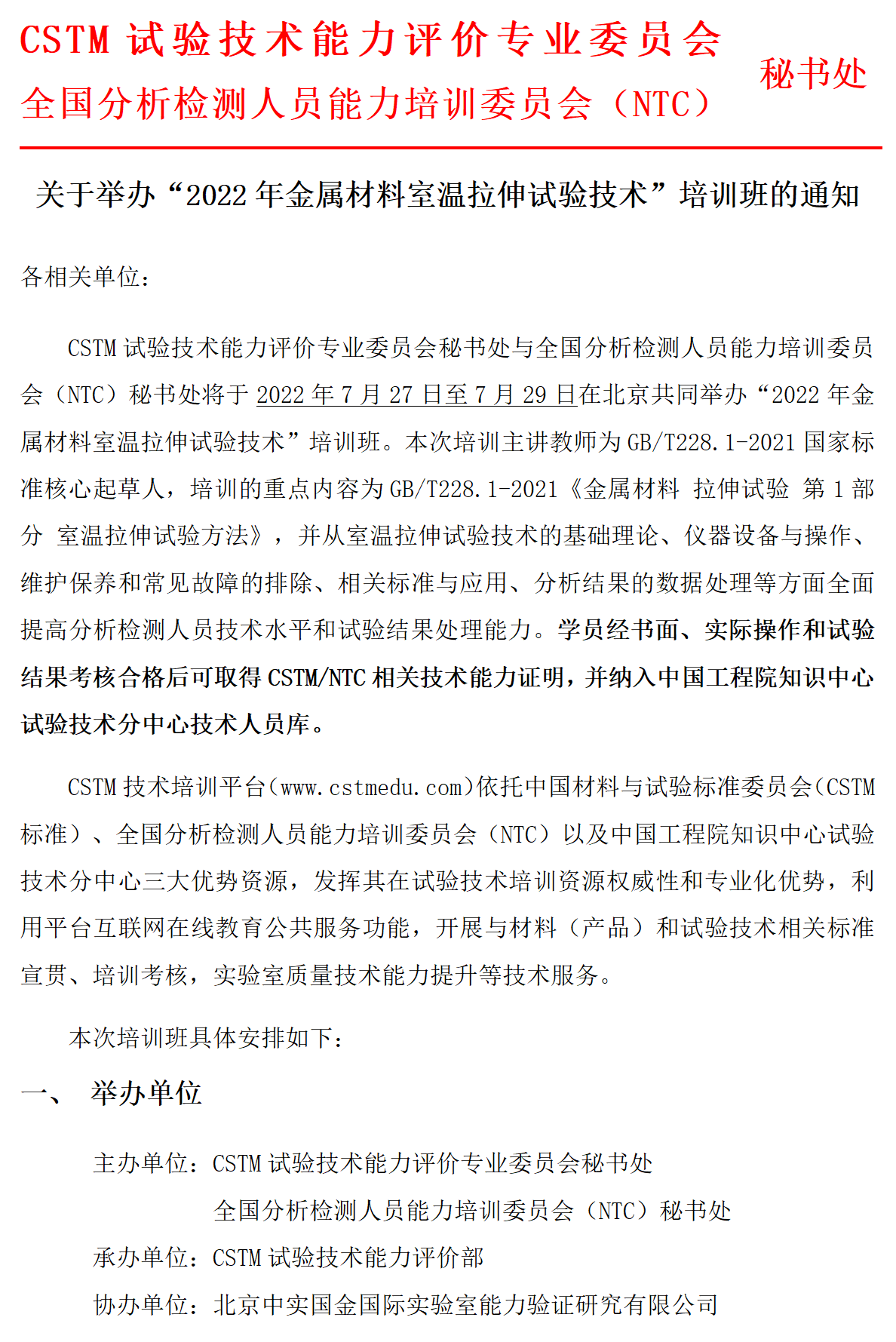 关于举办“2022年金属材料室温拉伸试验技术”培训班的通知