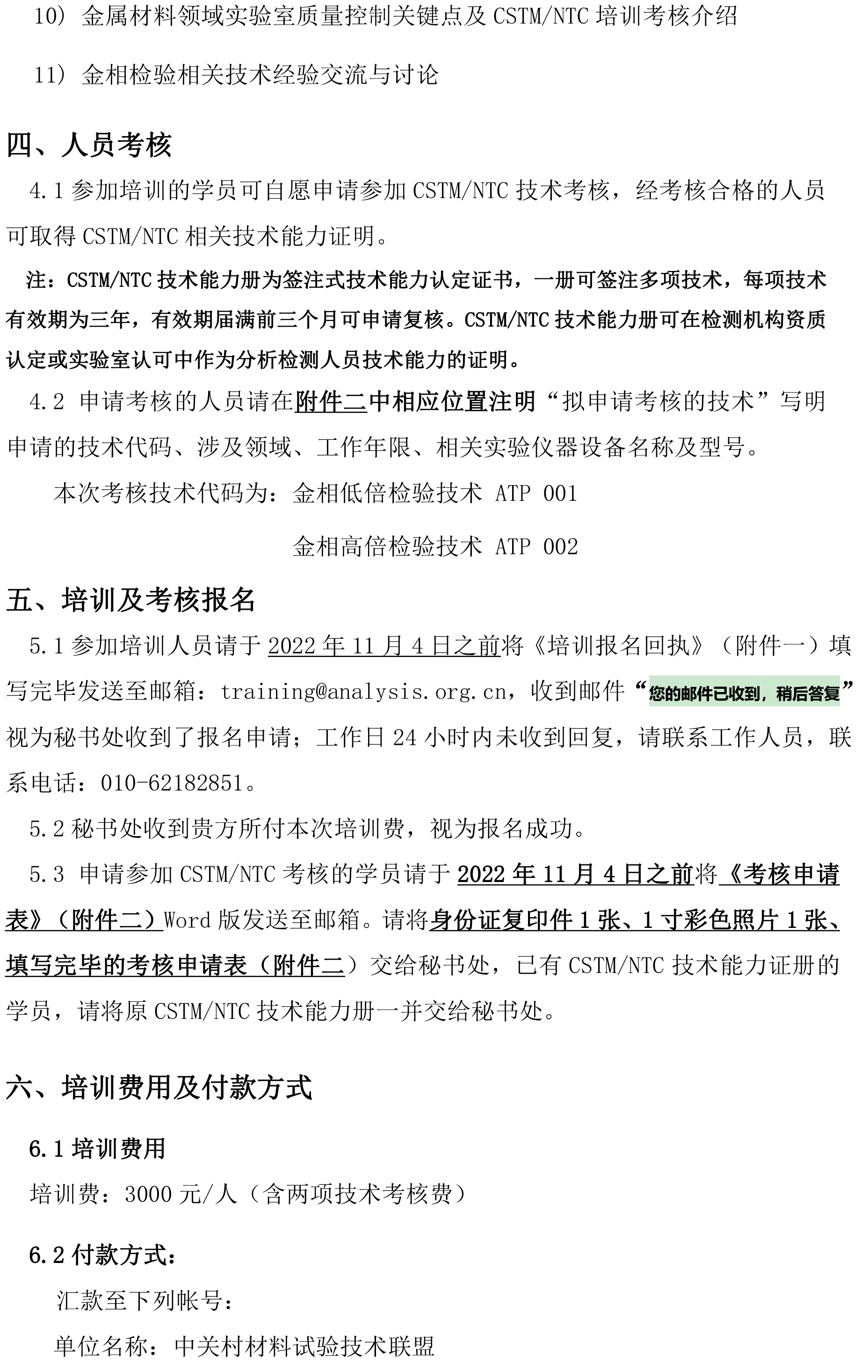 关于举办“2022年金相低倍检验技术和金相高倍检验技术”培训班的通知