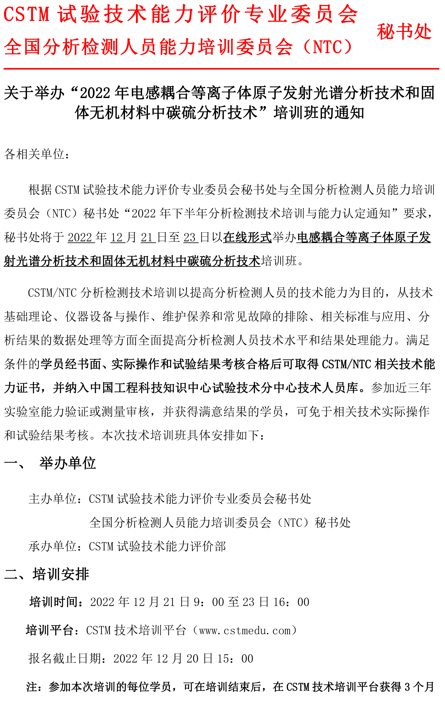 关于举办“2022年电感耦合等离子体原子发射光谱分析技术和固体无机材料中碳硫分析技术”培训班的通知