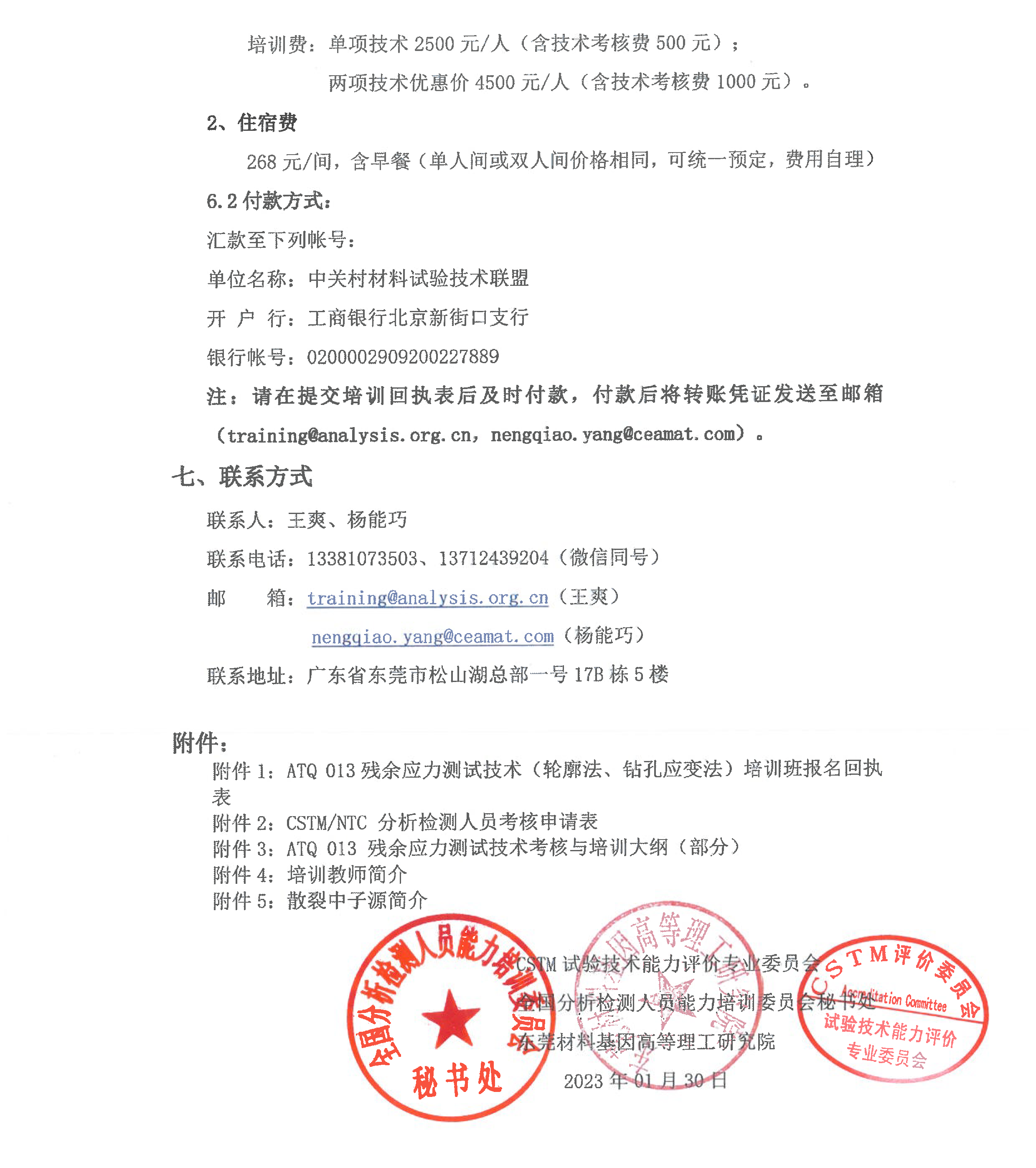 关于举办“ATQ 013残余应力测试技术(轮廓法、钻孔应变法)培训班”的通知