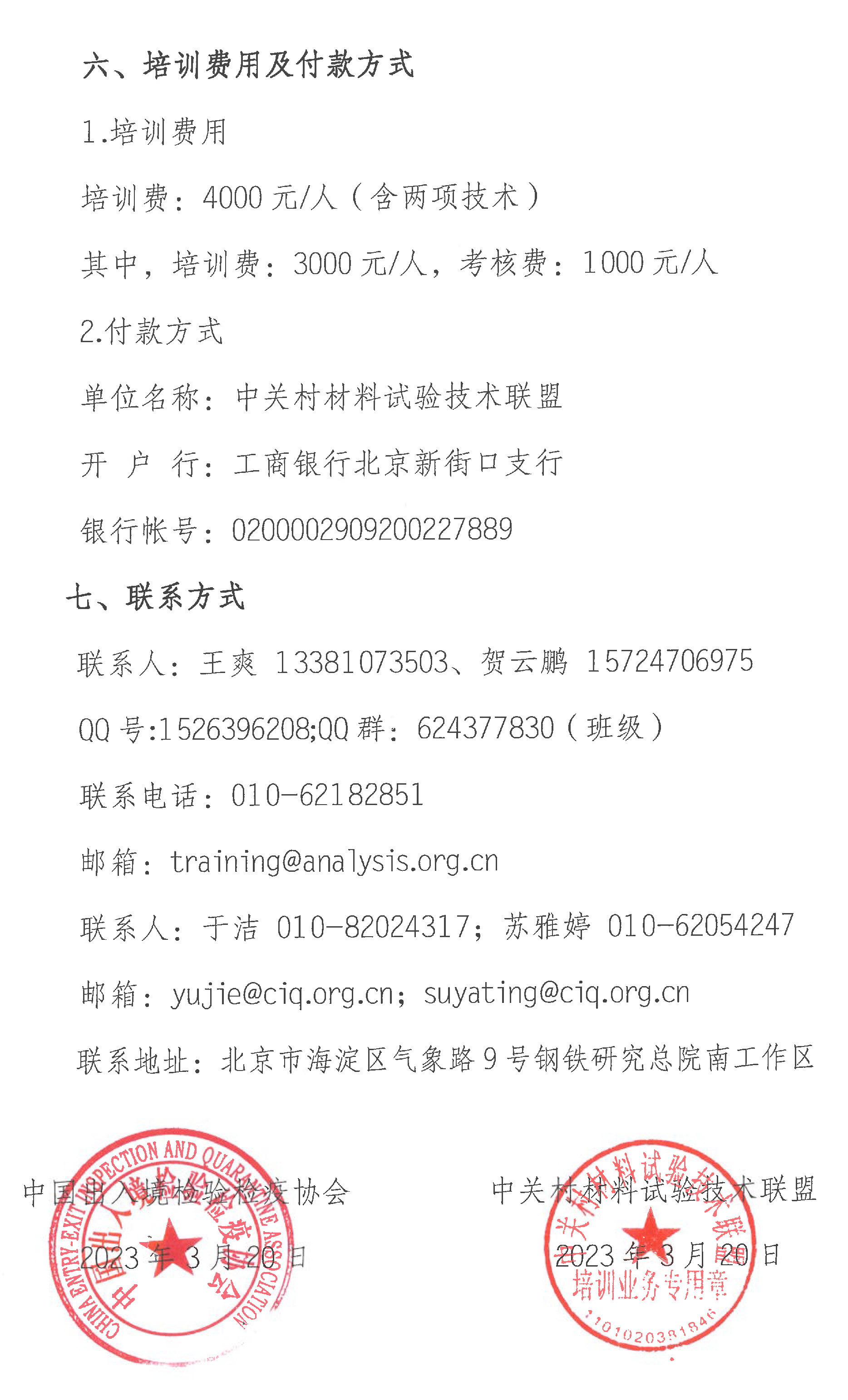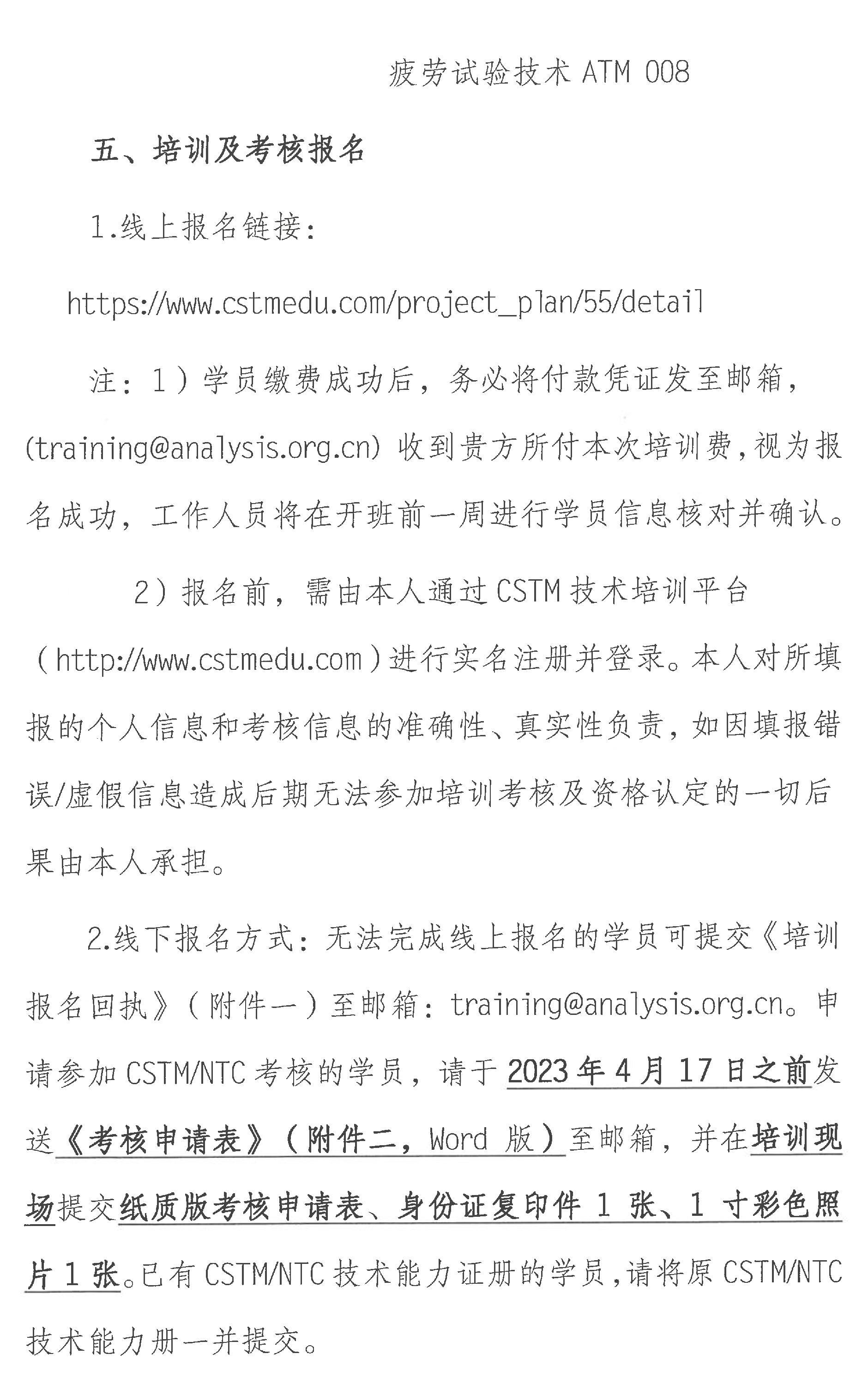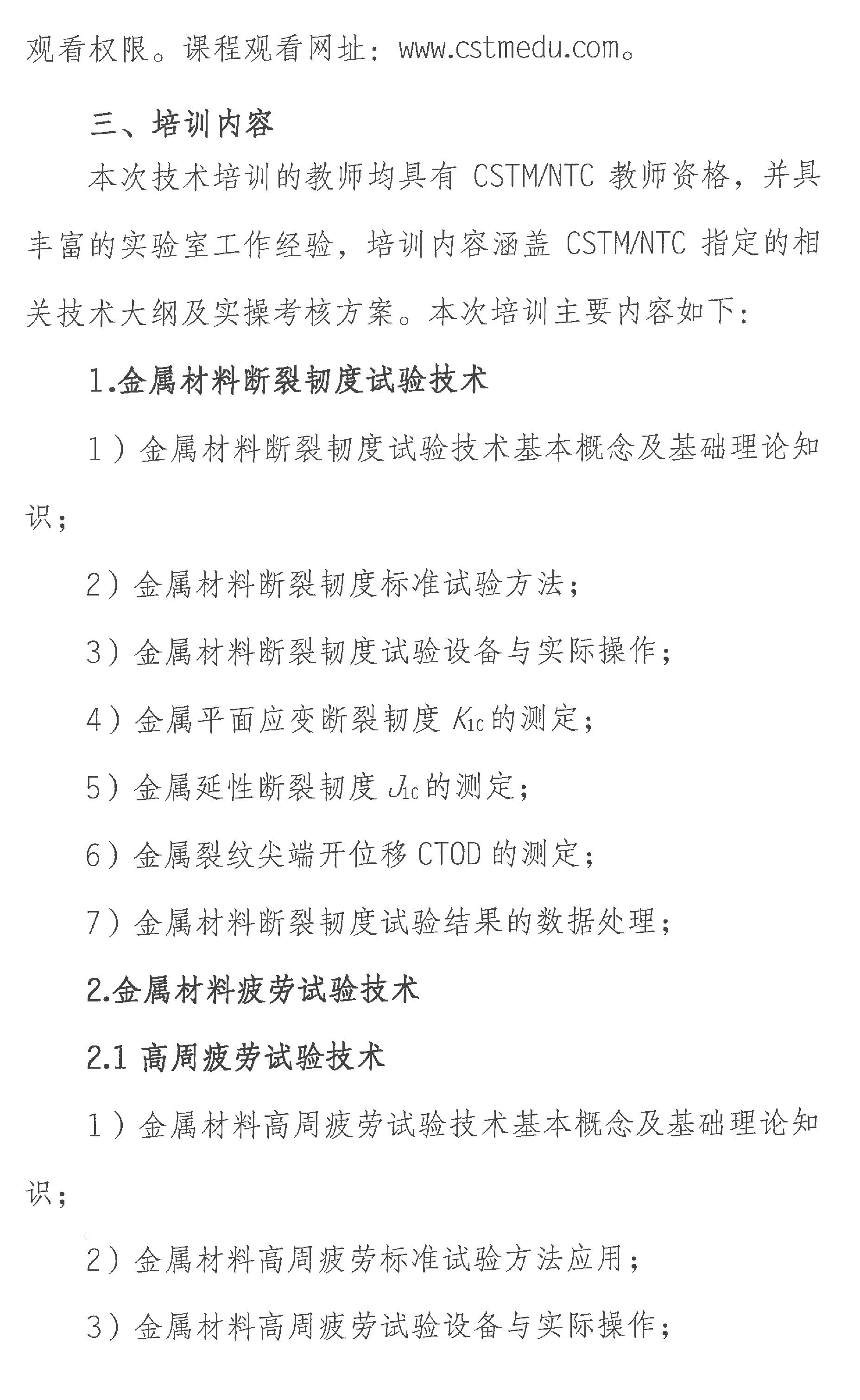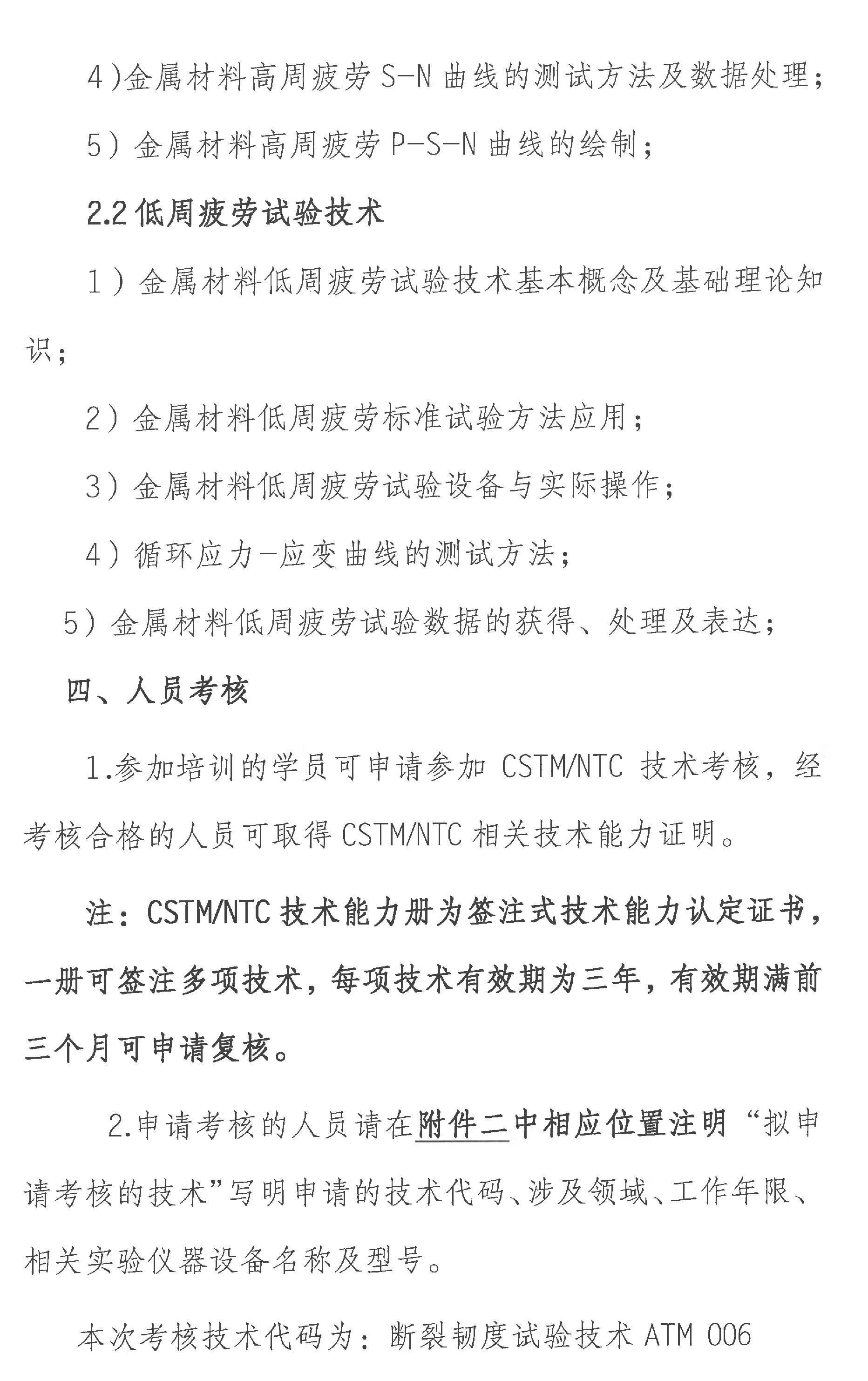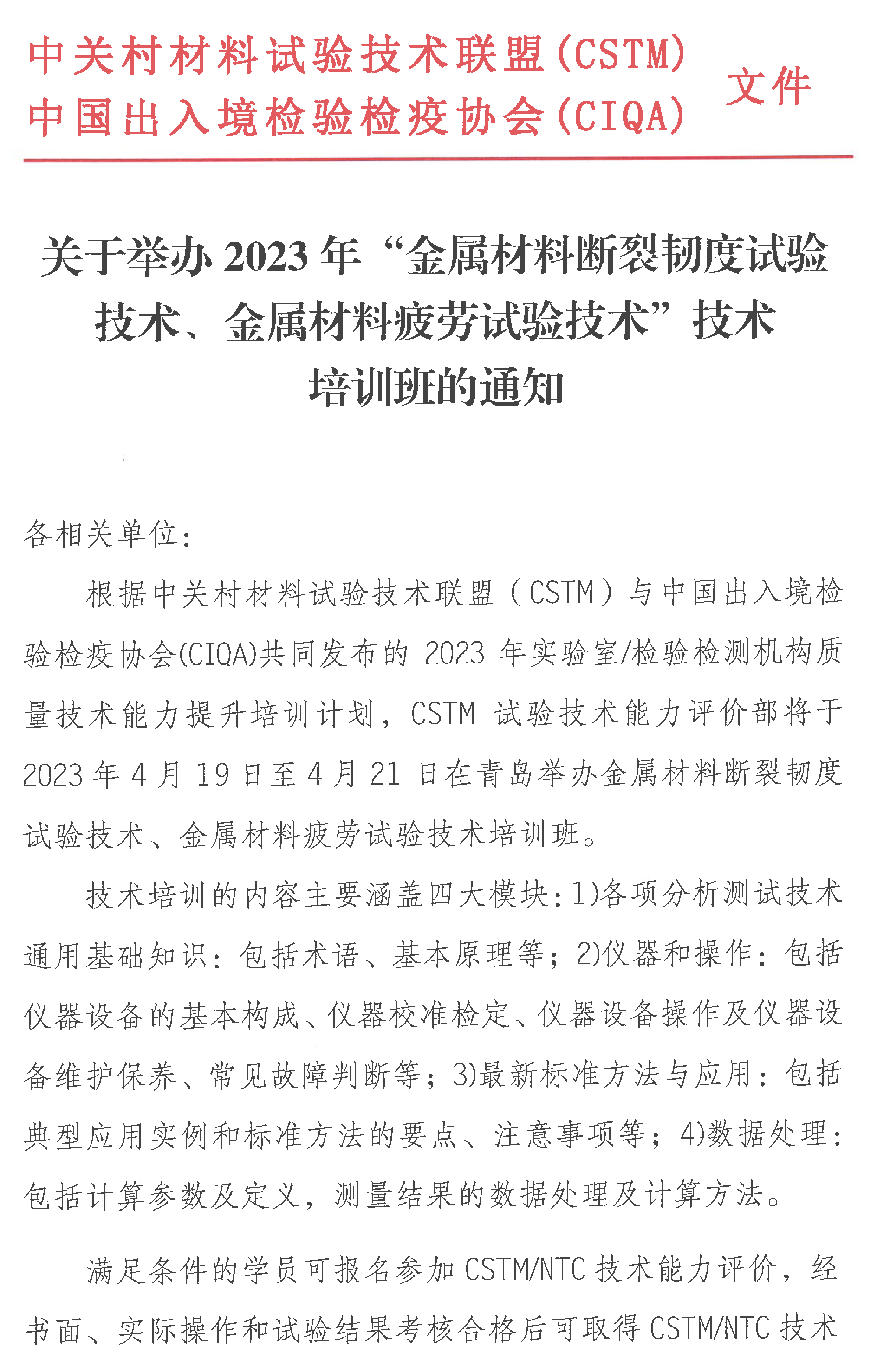 关于举办2023年“金属材料断裂韧度试验技术、金属材料疲劳试验技术”技术培训班的通知