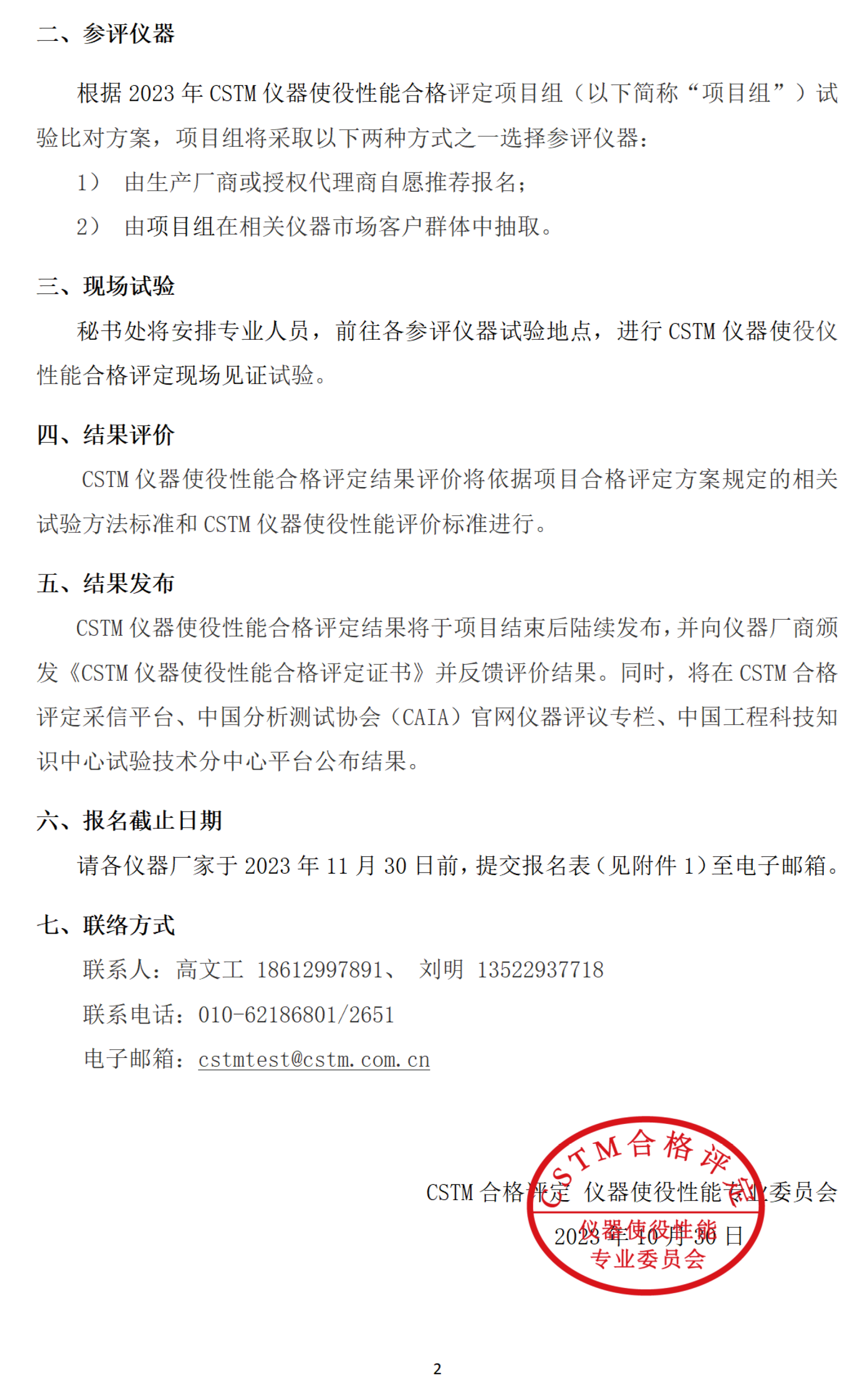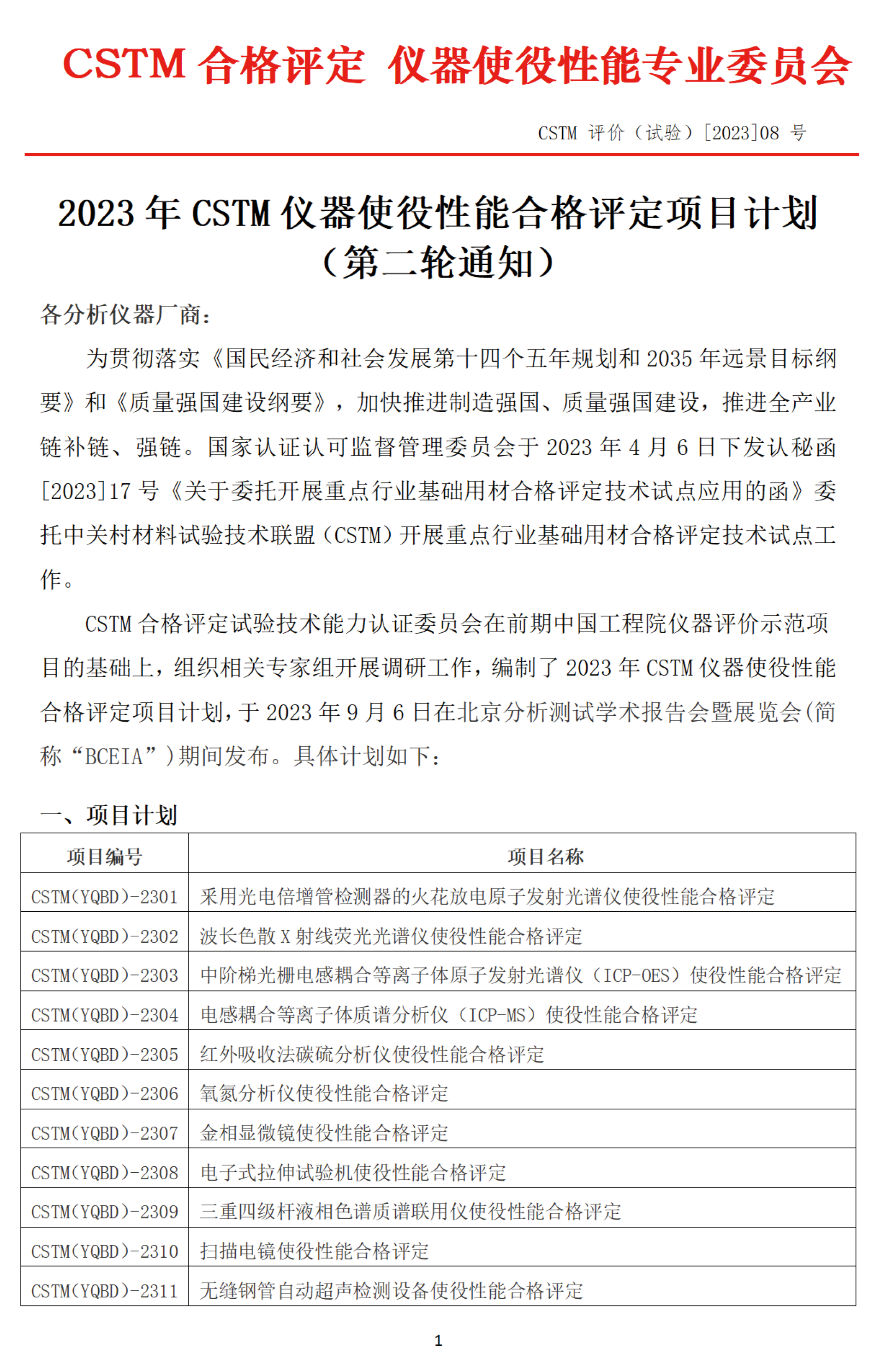 2023年CSTM仪器使役性能合格评定项目计划 (第二轮通知)