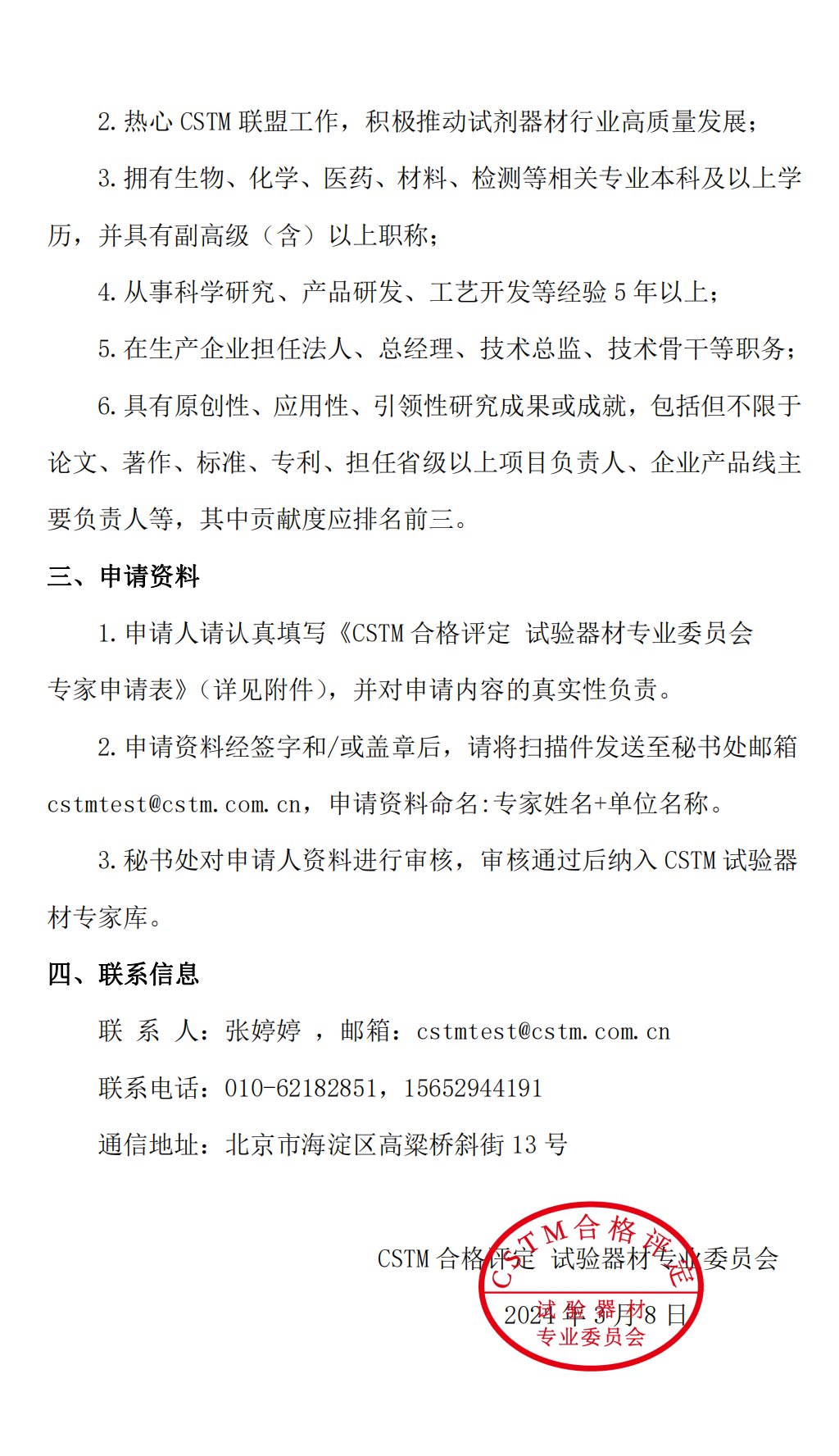 关于征集CSTM合格评定 试验器材专业委员会 评价专家的通知