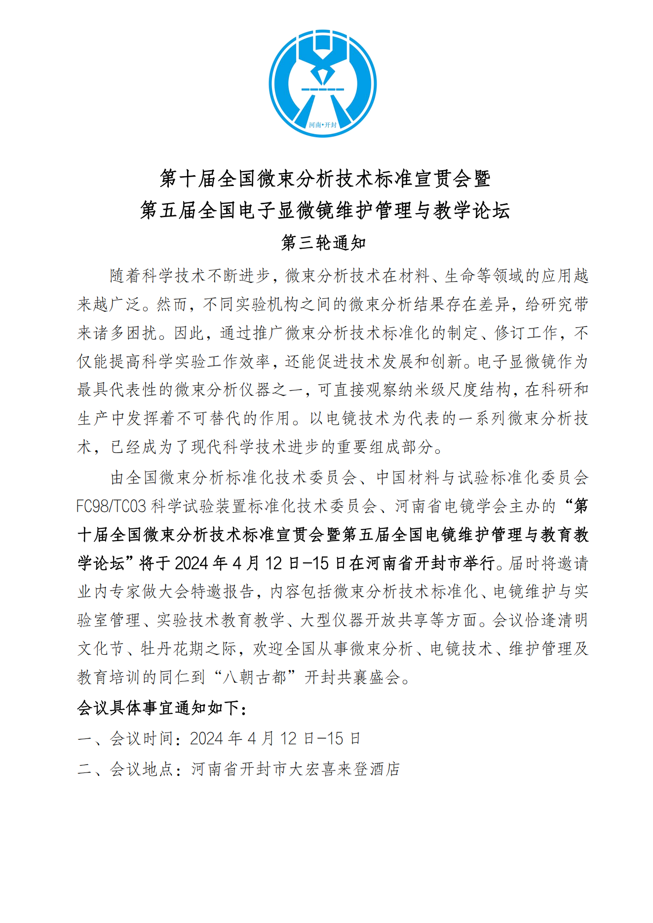 第十届全国微束分析技术标准宣贯会暨第五届全国电子显微镜维护管理与教学论坛第三轮通知
