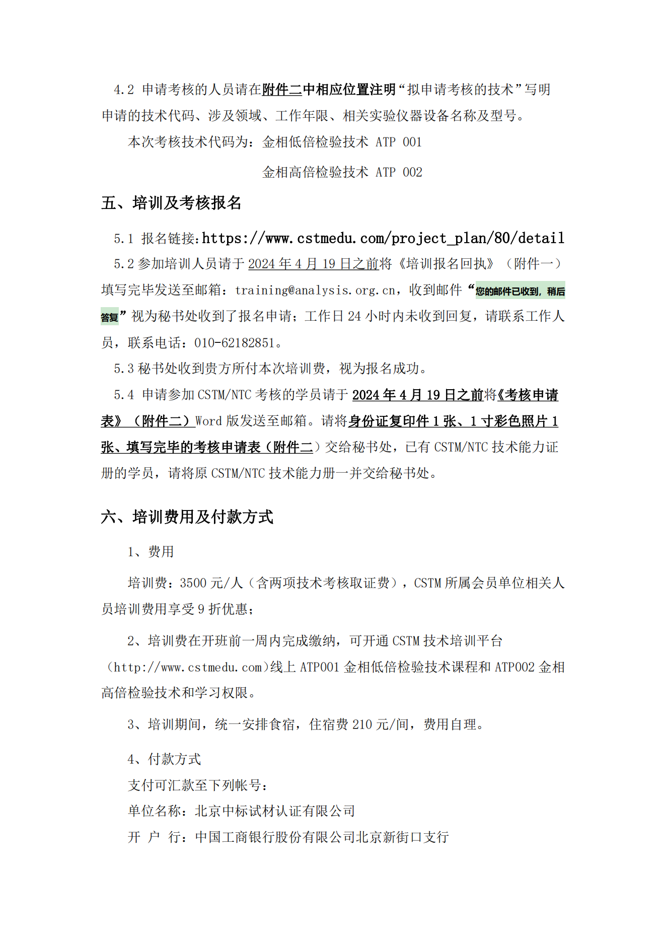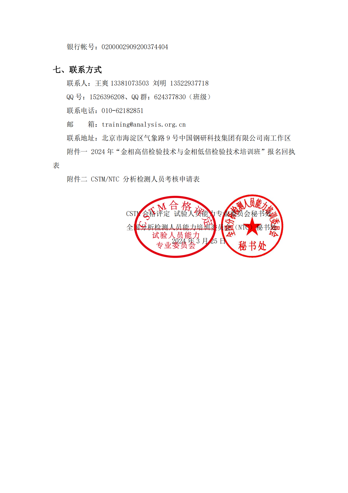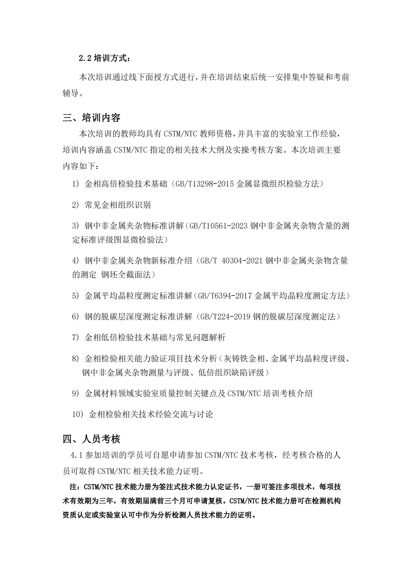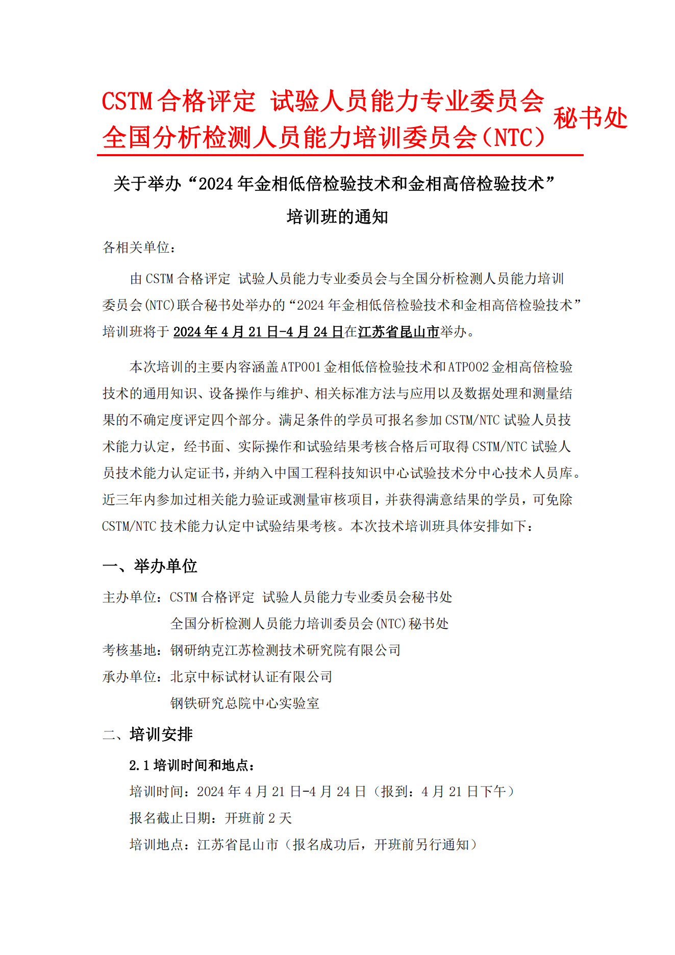 关于举办“2024年金相低倍检验技术和金相高倍检验技术” 培训班的通知