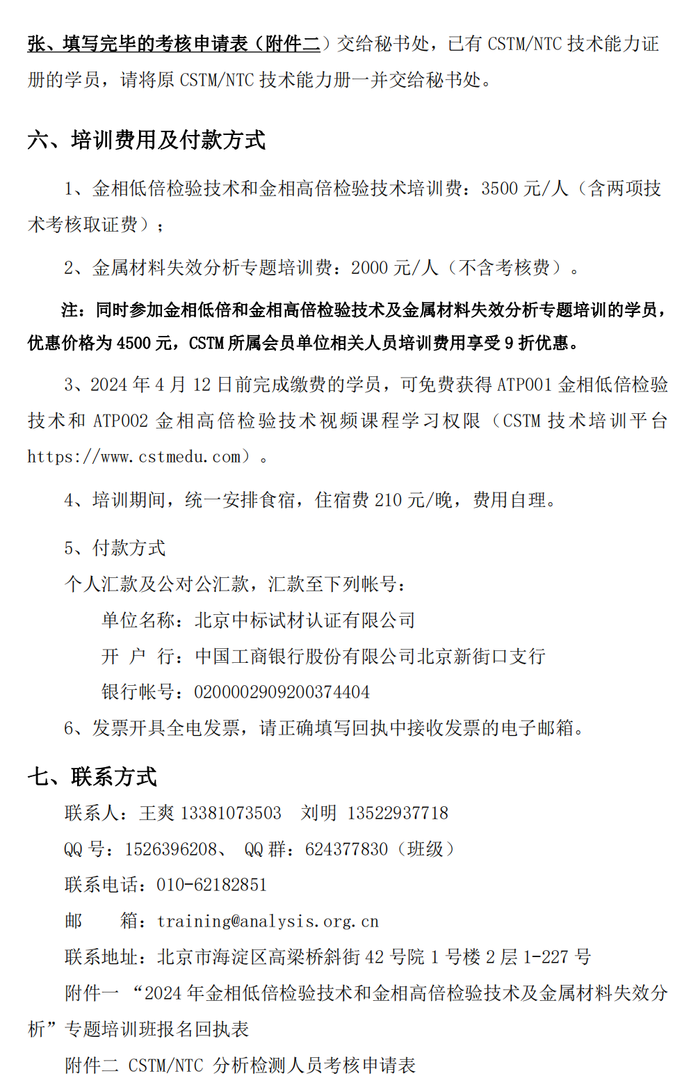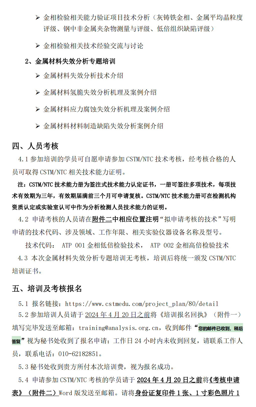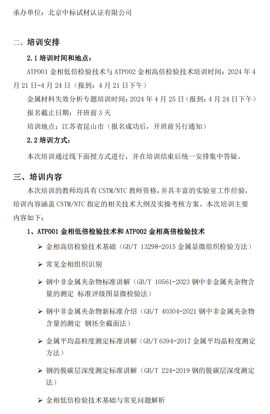关于举办“2024年金相低倍检验技术和金相高倍检验技术” 及“金属材料失效分析”专题培训的通知 (第二轮)